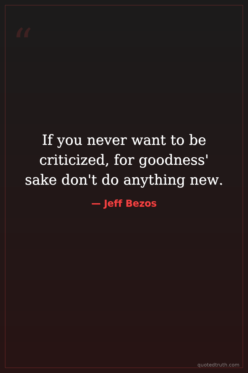 If you never want to be criticized, for goodness' sake don't do anything new.