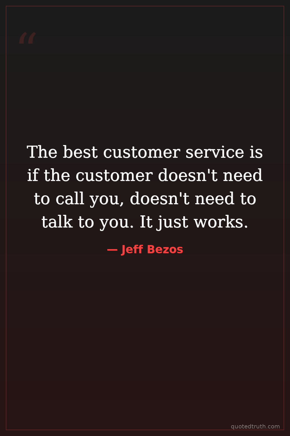 The best customer service is if the customer doesn't need to call you, doesn't need to talk to you. It just works.