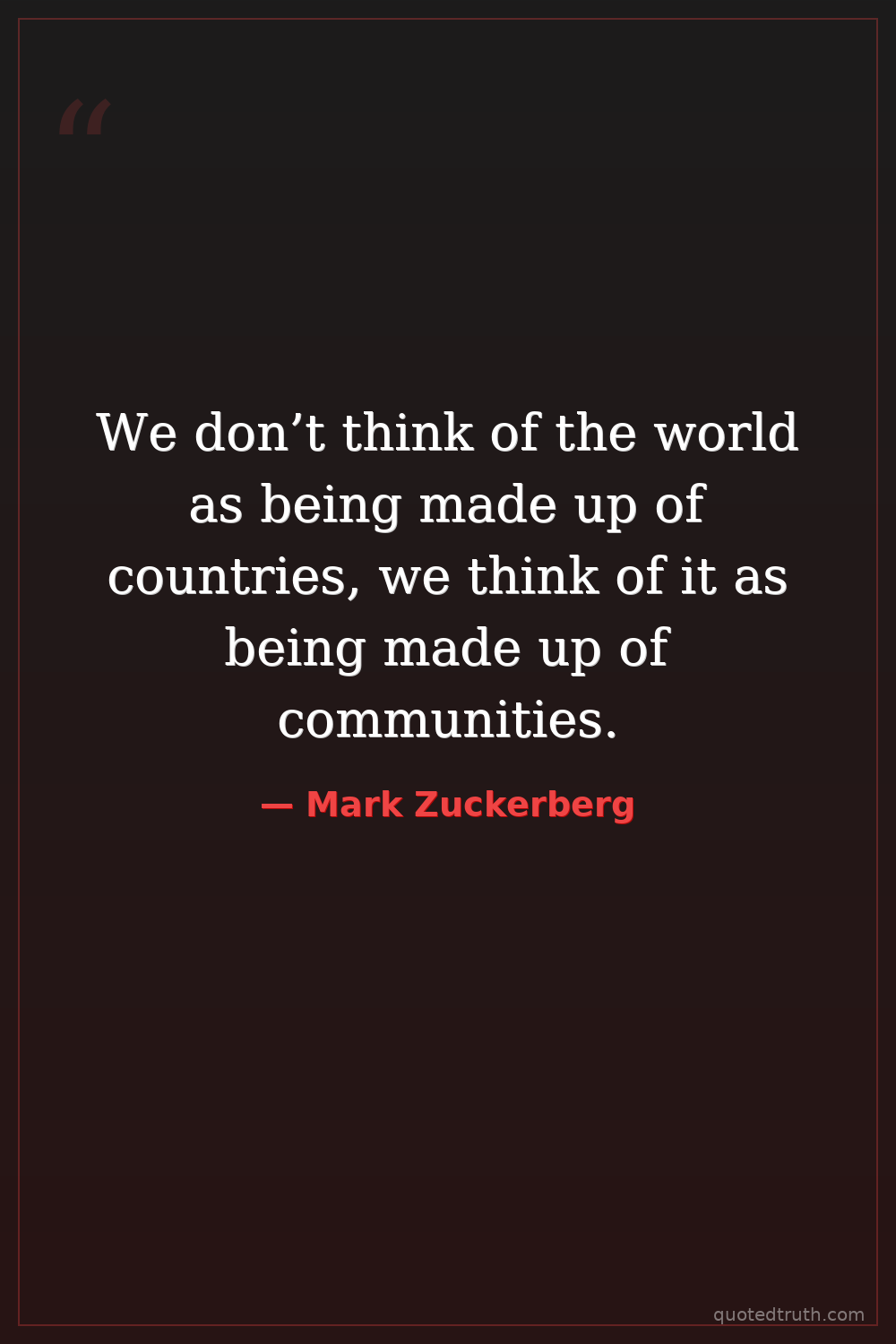 We don’t think of the world as being made up of countries, we think of it as being made up of communities.