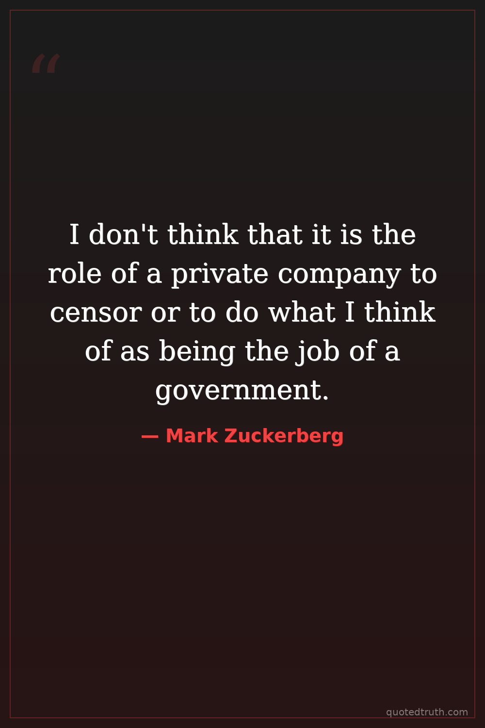 I don't think that it is the role of a private company to censor or to do what I think of as being the job of a government.