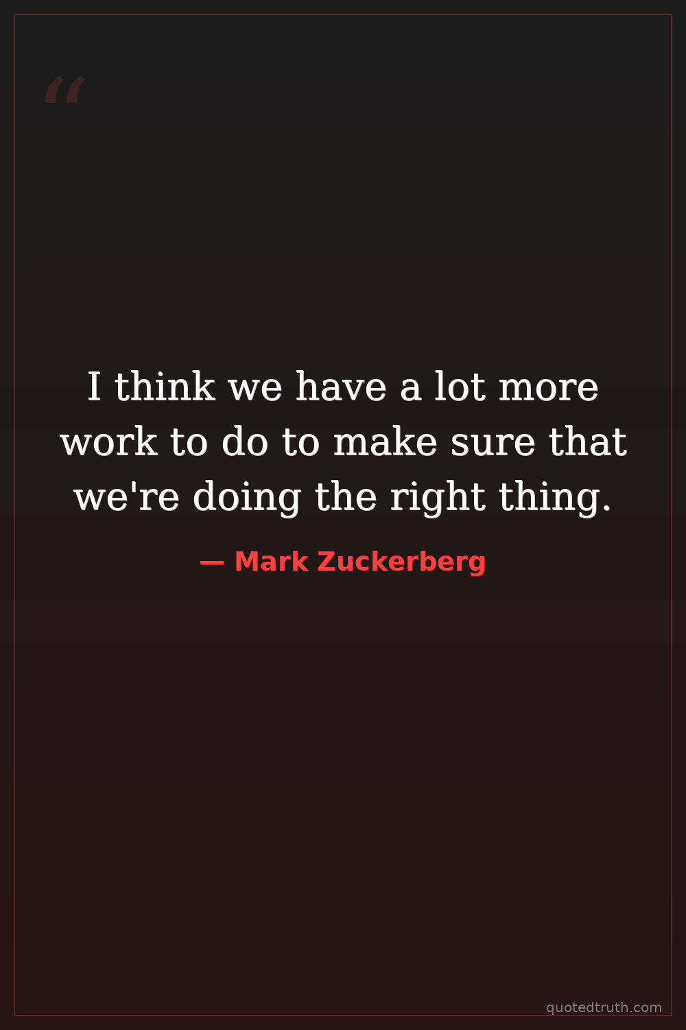 I think we have a lot more work to do to make sure that we're doing the right thing.