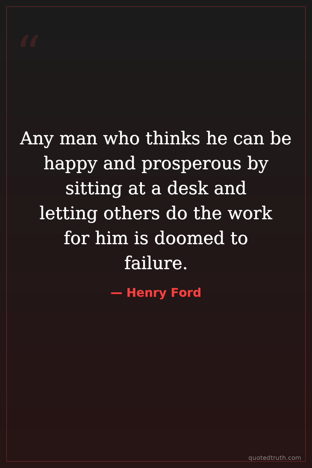 Any man who thinks he can be happy and prosperous by sitting at a desk and letting others do the work for him is doomed to failure.