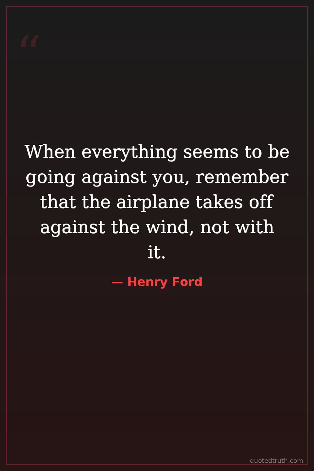 When everything seems to be going against you, remember that the airplane takes off against the wind, not with it.