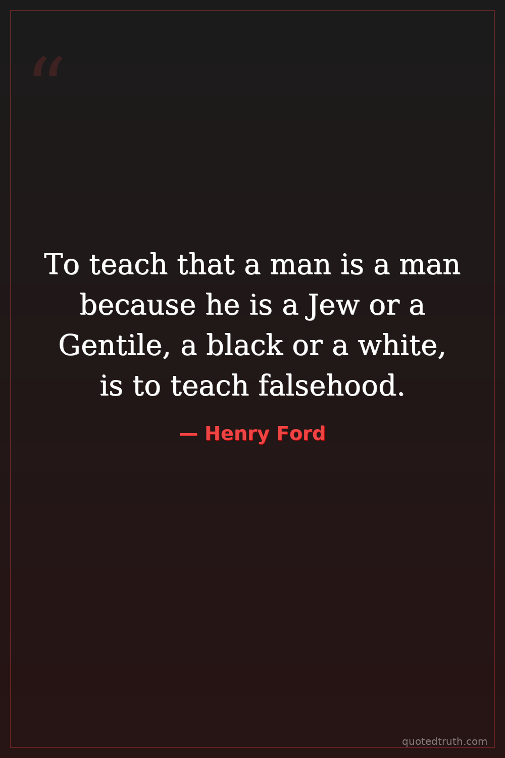 To teach that a man is a man because he is a Jew or a Gentile, a black or a white, is to teach falsehood.