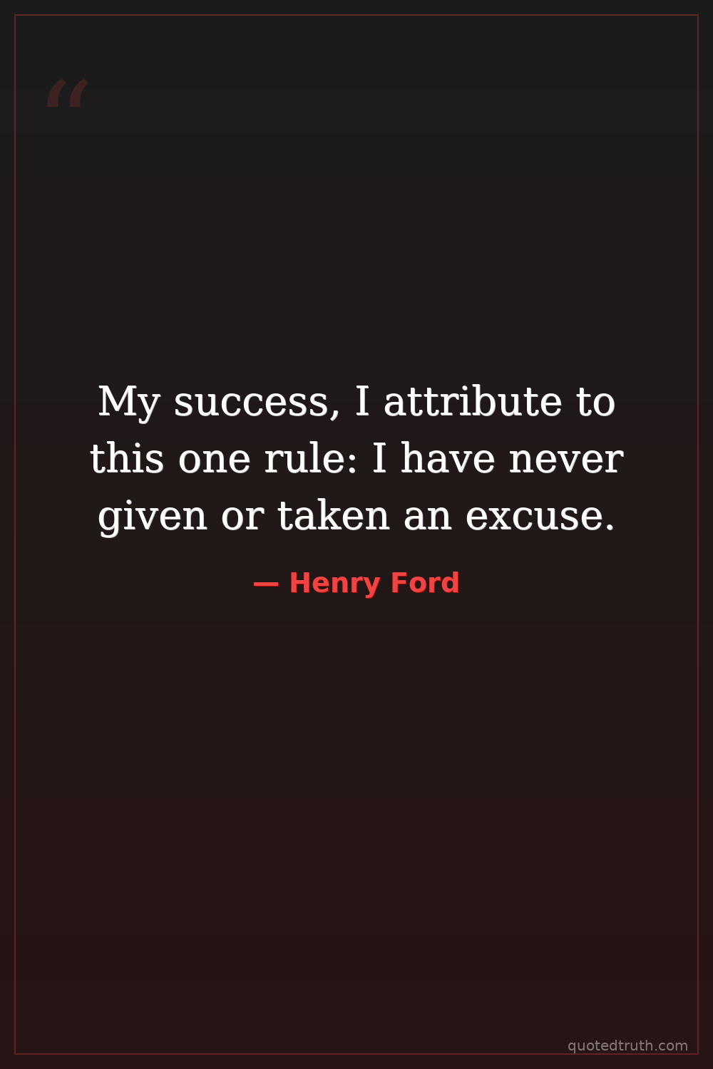 My success, I attribute to this one rule: I have never given or taken an excuse.