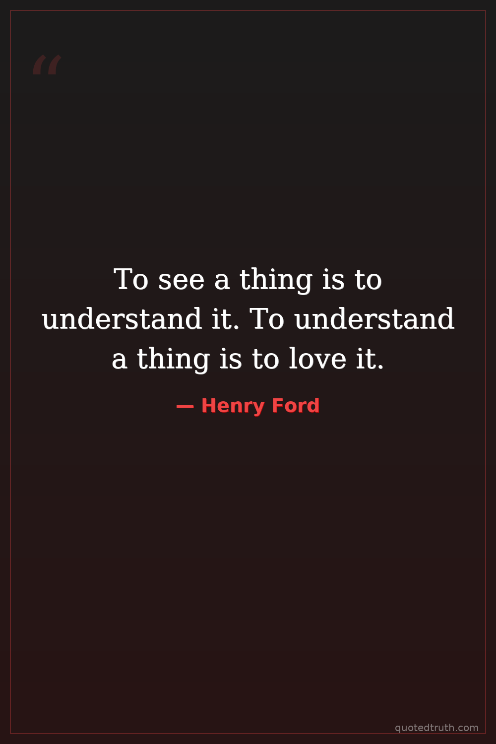 To see a thing is to understand it. To understand a thing is to love it.