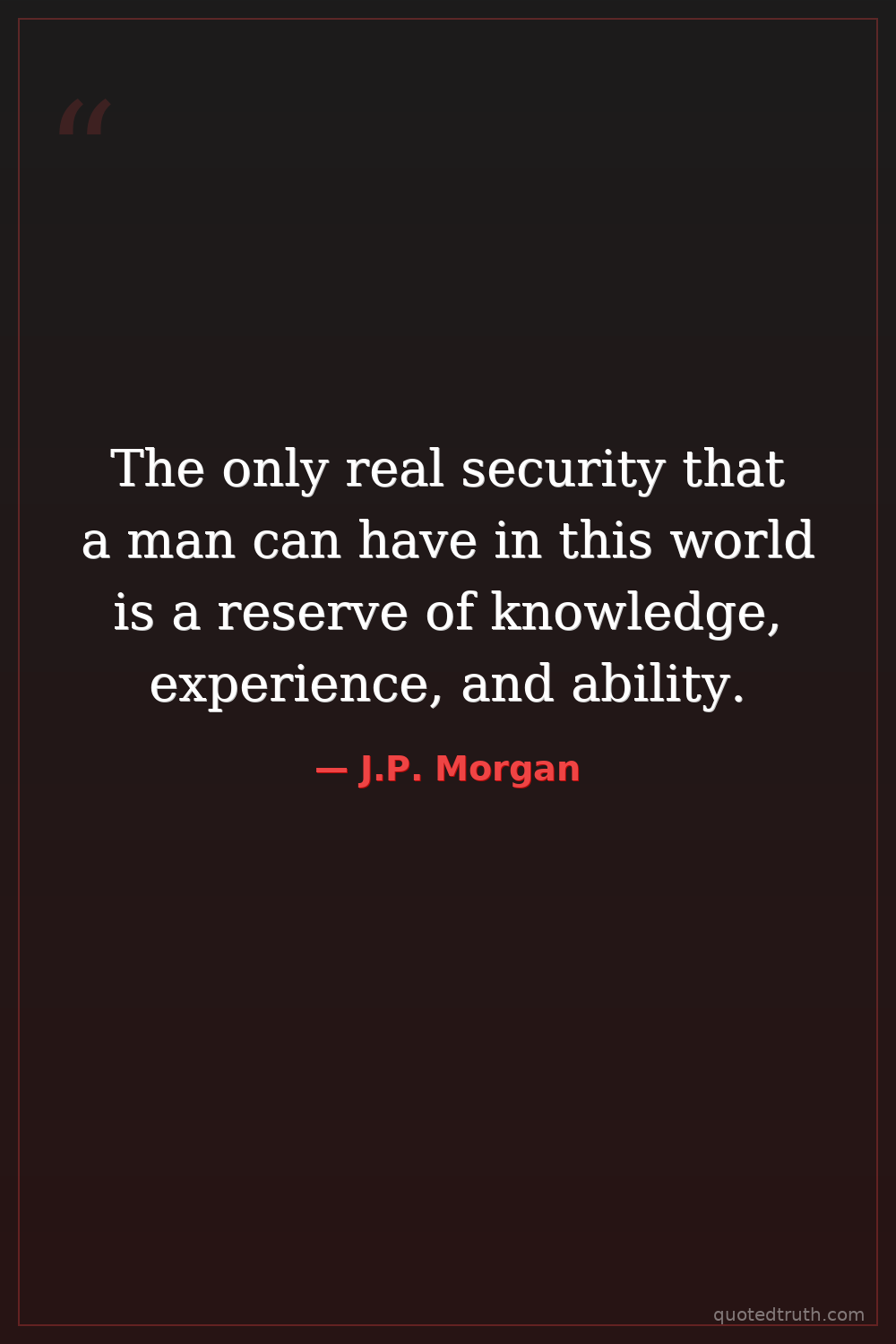 The only real security that a man can have in this world is a reserve of knowledge, experience, and ability.