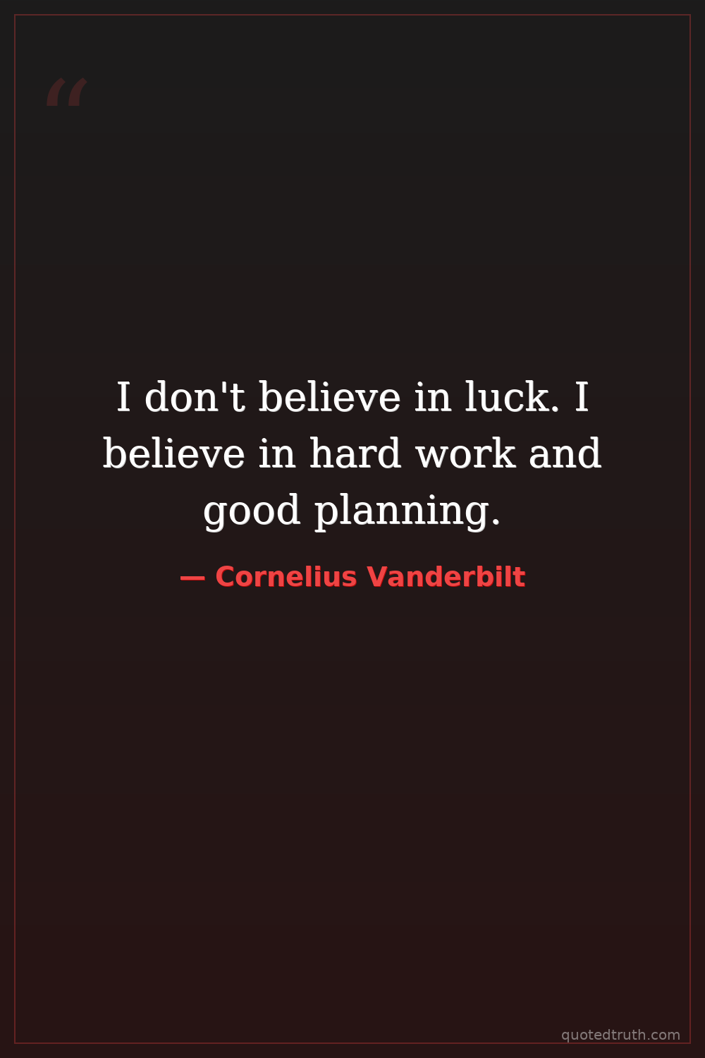 I don't believe in luck. I believe in hard work and good planning.