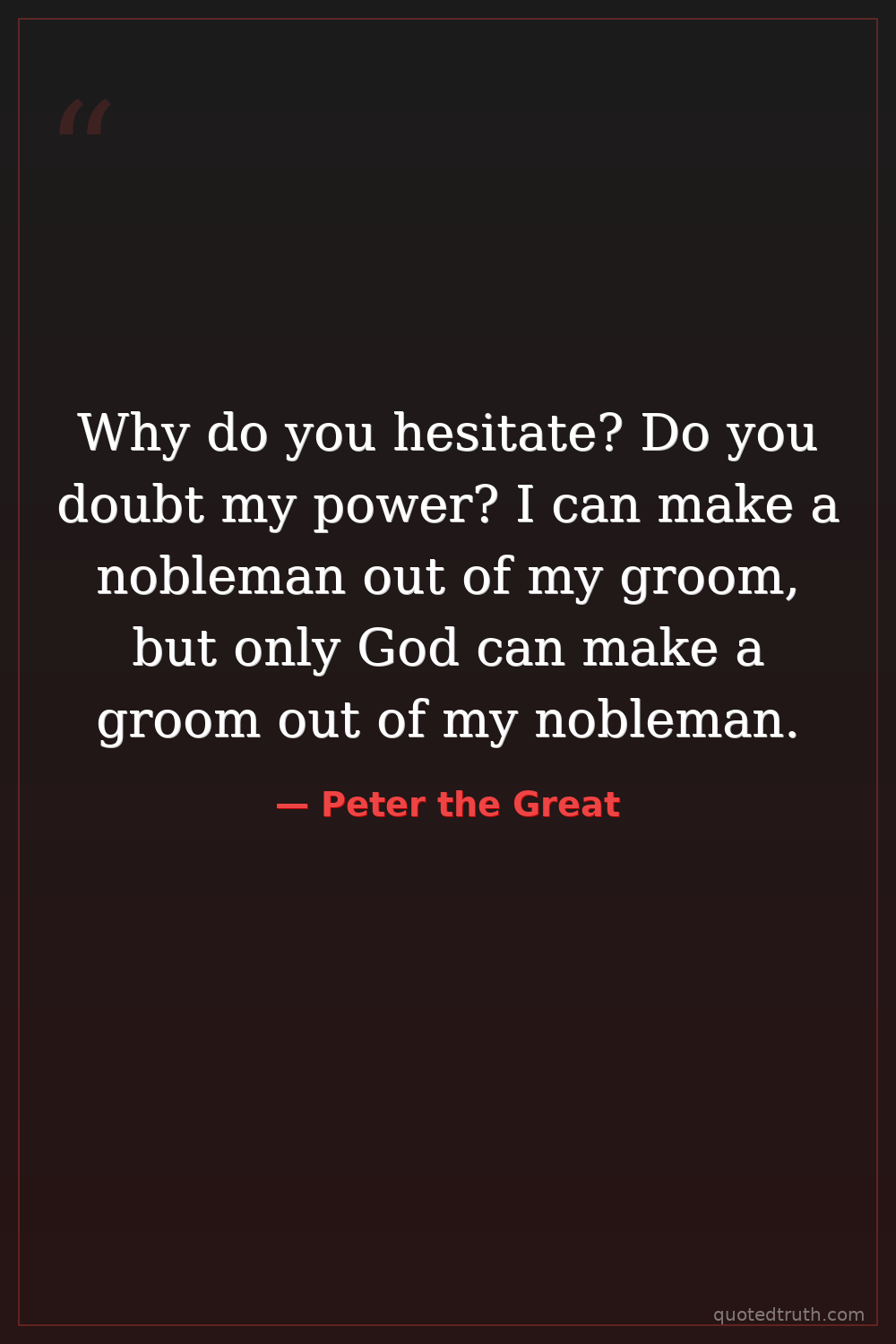 Why do you hesitate? Do you doubt my power? I can make a nobleman out of my groom, but only God can make a groom out of my nobleman.