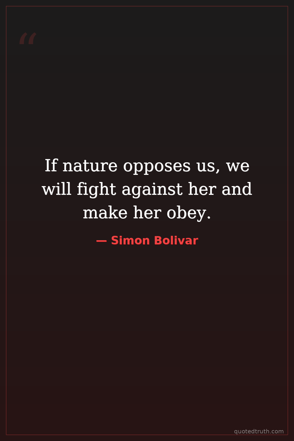 If nature opposes us, we will fight against her and make her obey.