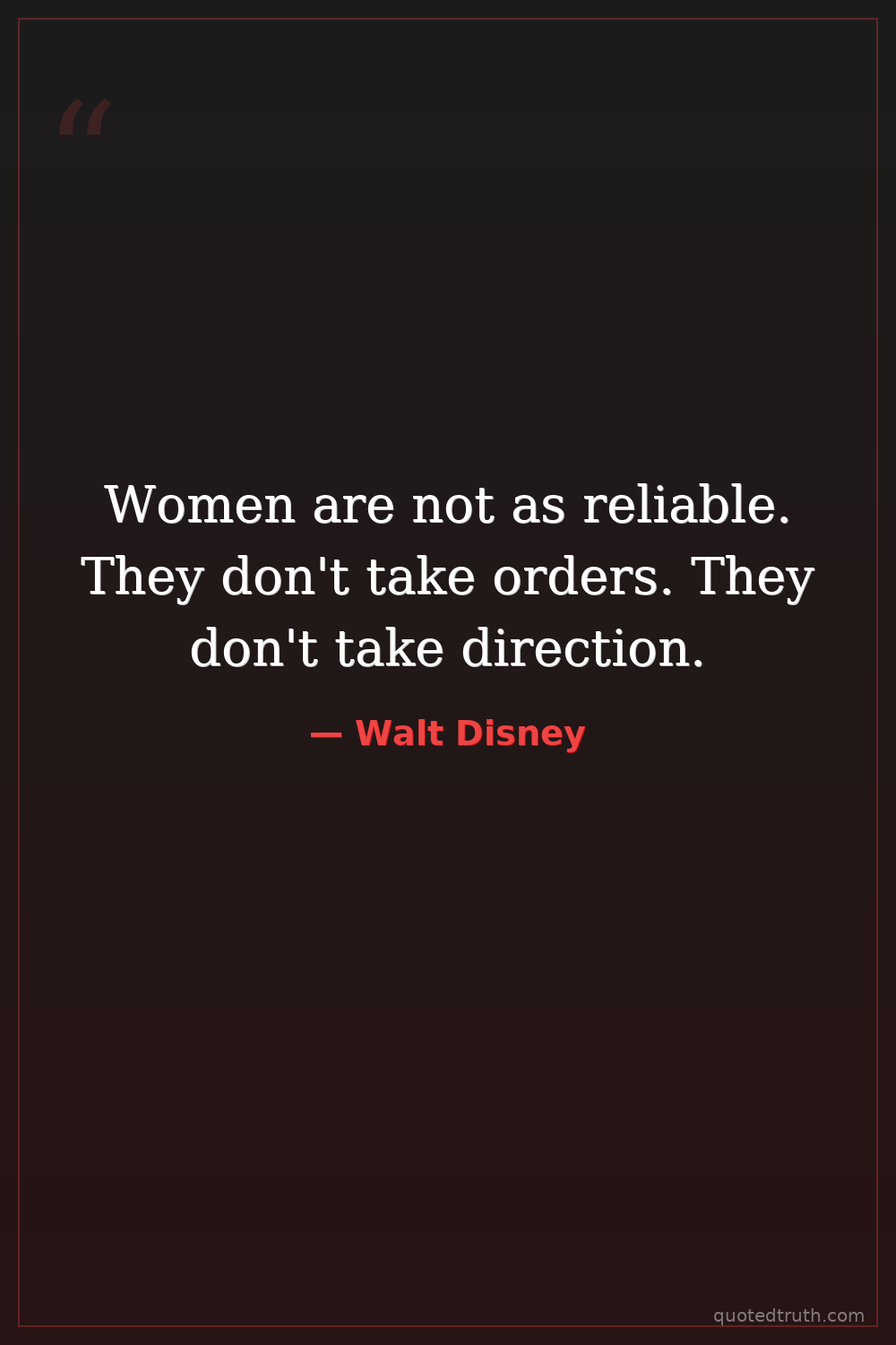 Women are not as reliable. They don't take orders. They don't take direction.