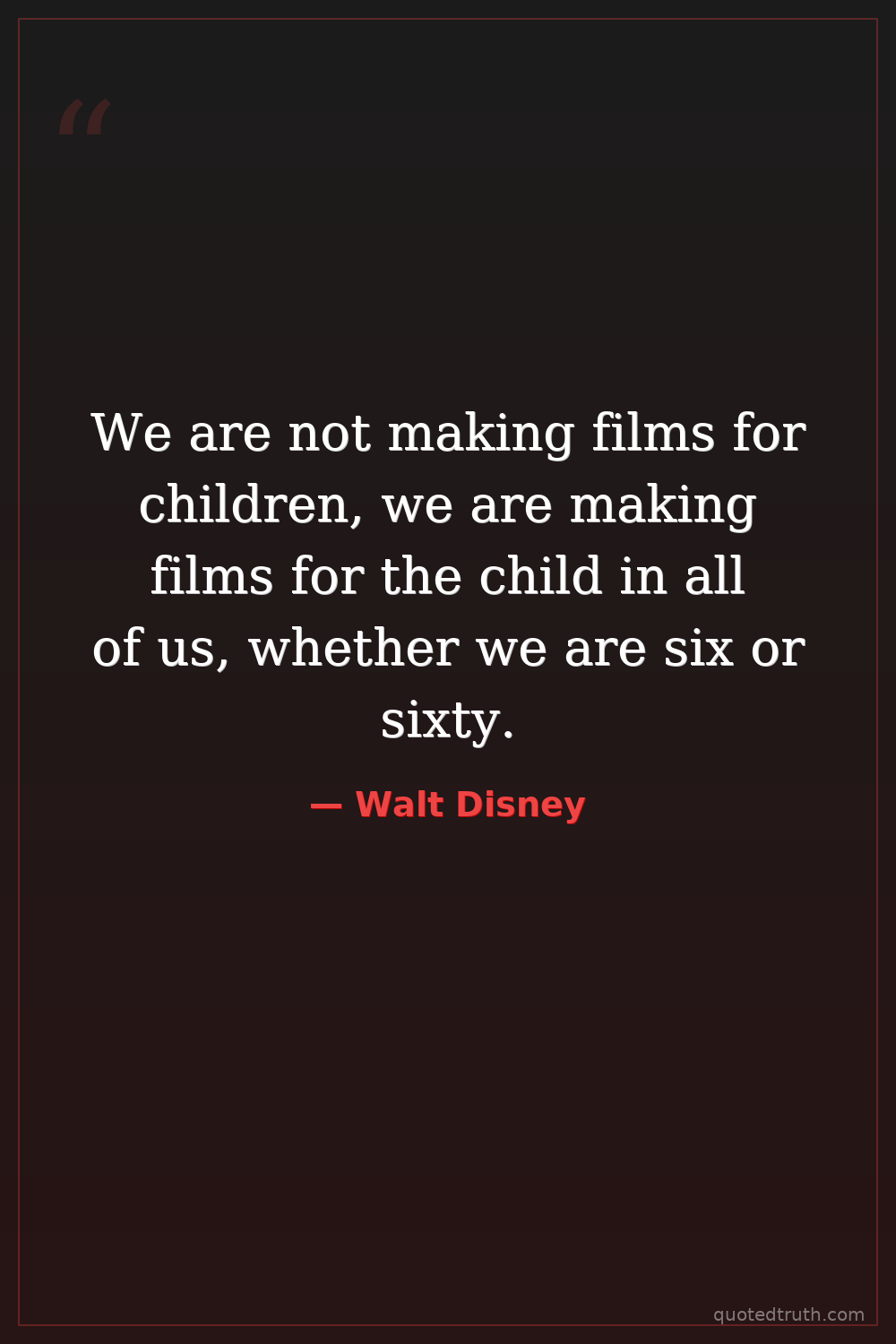 We are not making films for children, we are making films for the child in all of us, whether we are six or sixty.