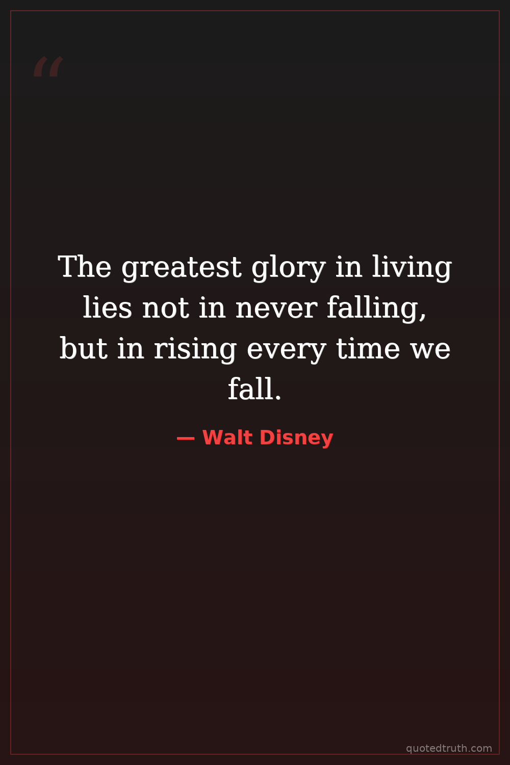 The greatest glory in living lies not in never falling, but in rising every time we fall.