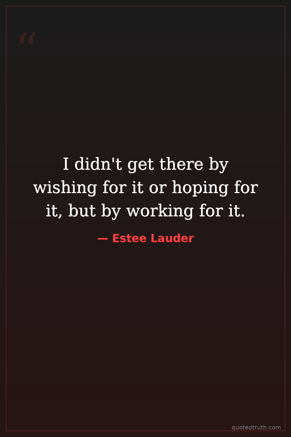 I didn't get there by wishing for it or hoping for it, but by working for it.
