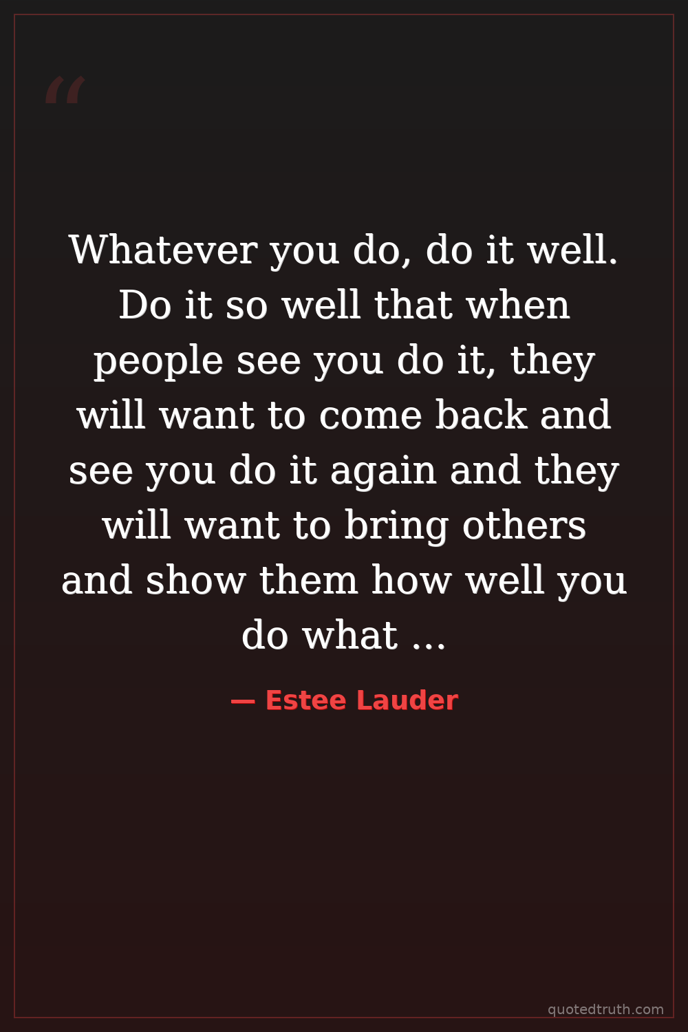 Whatever you do, do it well. Do it so well that when people see you do it, they will want to come back and see you do it again and they will want to bring others and show them how well you do what you do.
