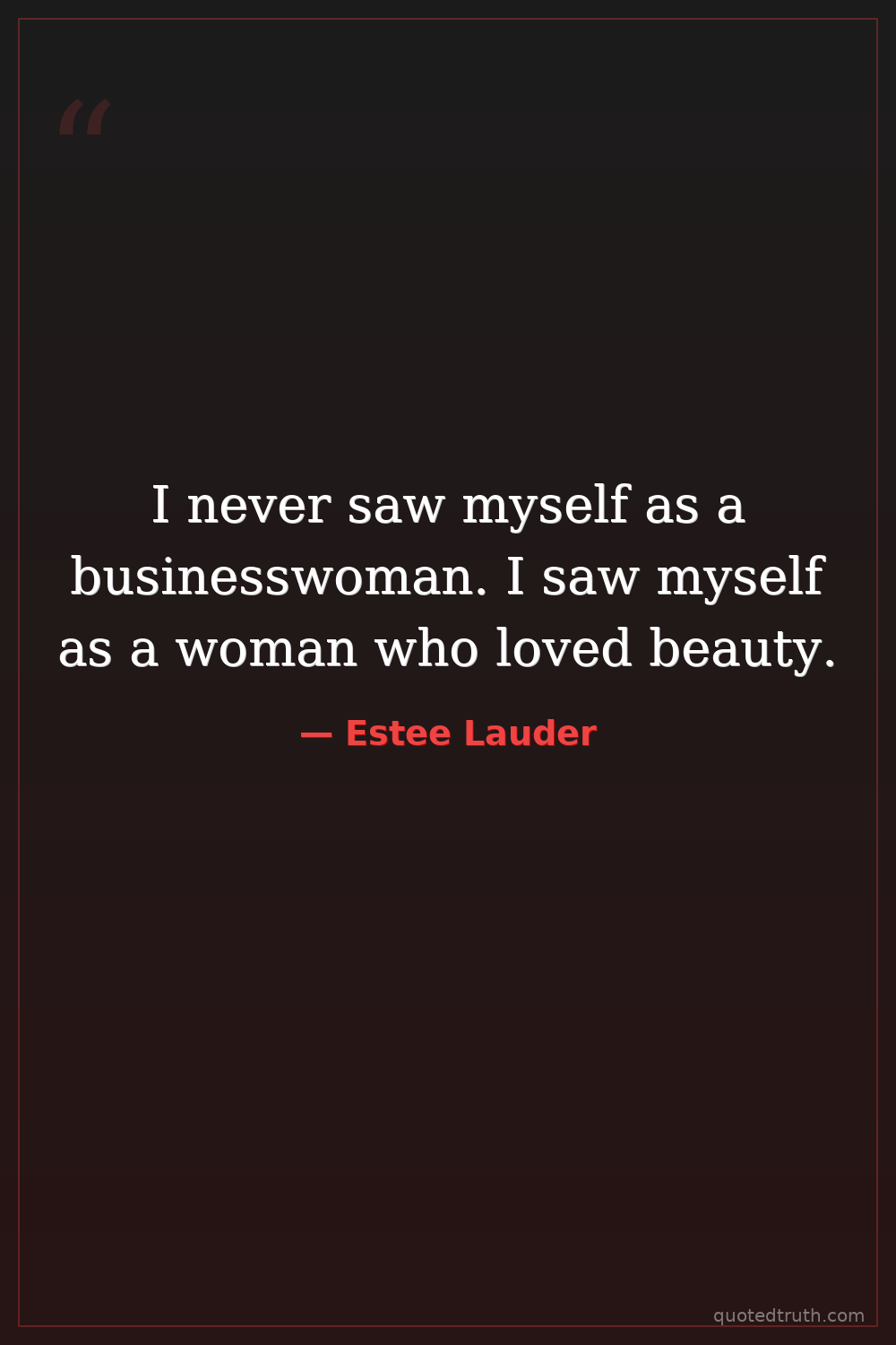 I never saw myself as a businesswoman. I saw myself as a woman who loved beauty.