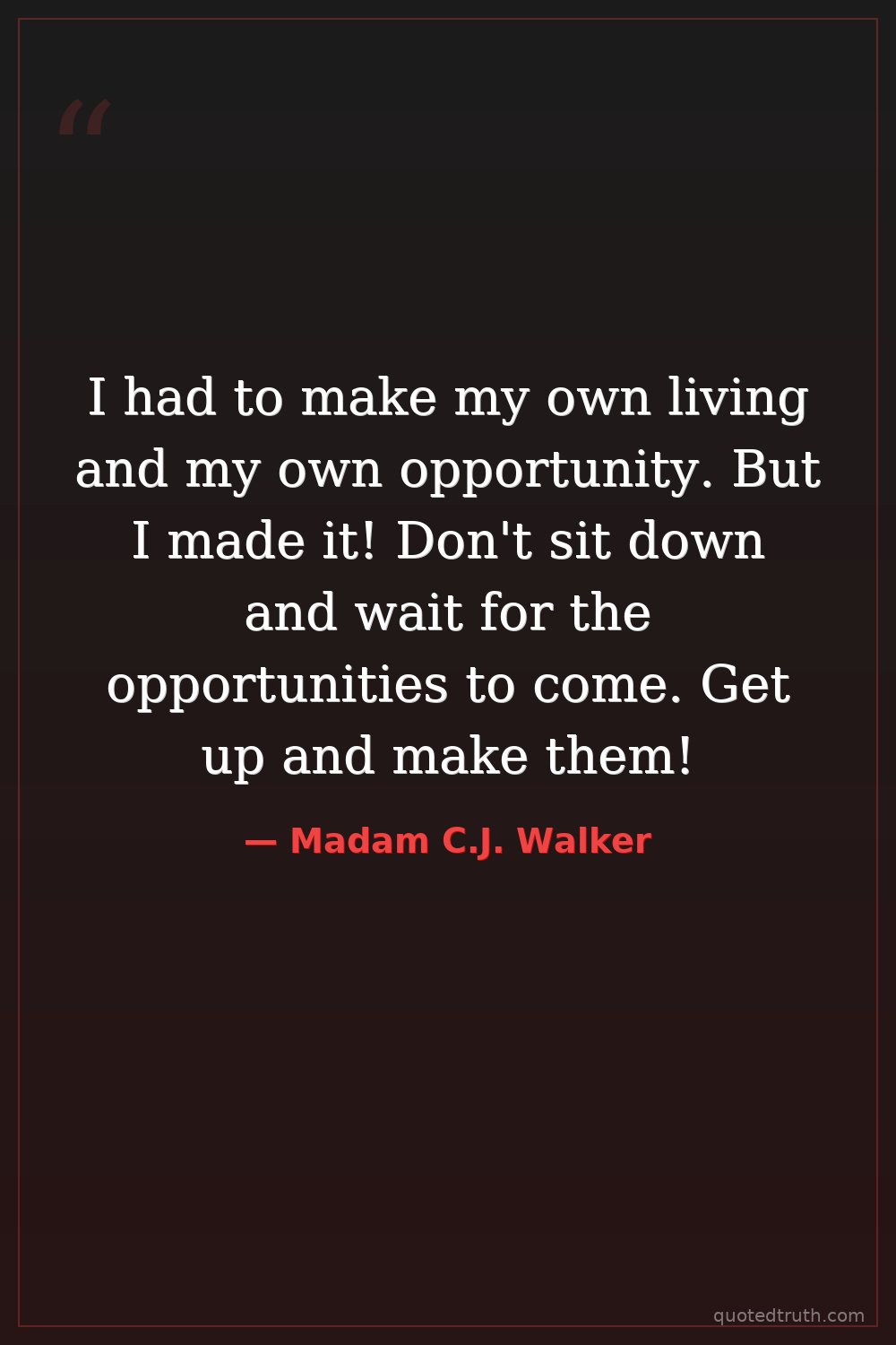 I had to make my own living and my own opportunity. But I made it! Don't sit down and wait for the opportunities to come. Get up and make them!