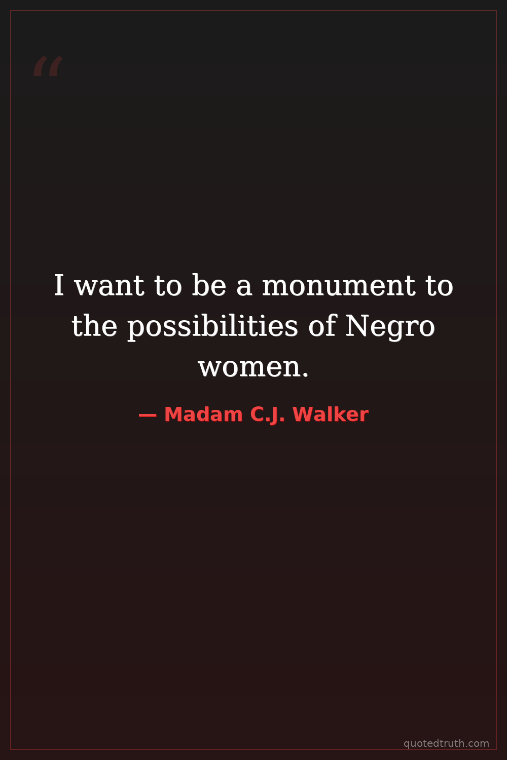 Strange & Unusual"I am a woman who came from the cotton fields of the South. From there, I was promoted to the washtub. From there, I was promoted to the cook kitchen. And from there, I promoted myself into the busines…"