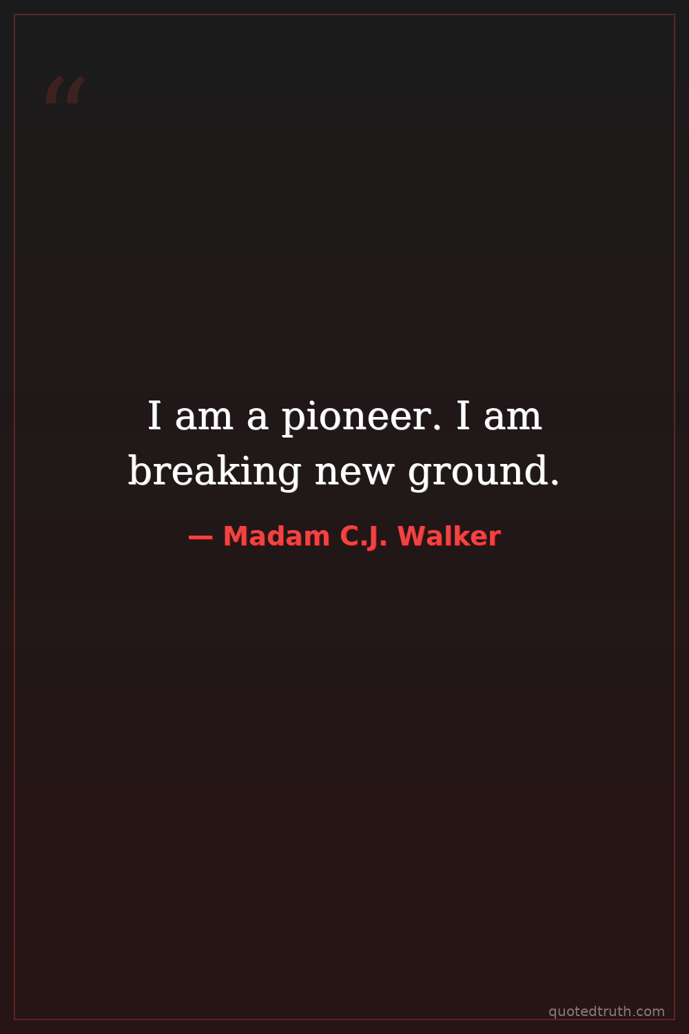 I am a pioneer. I am breaking new ground.