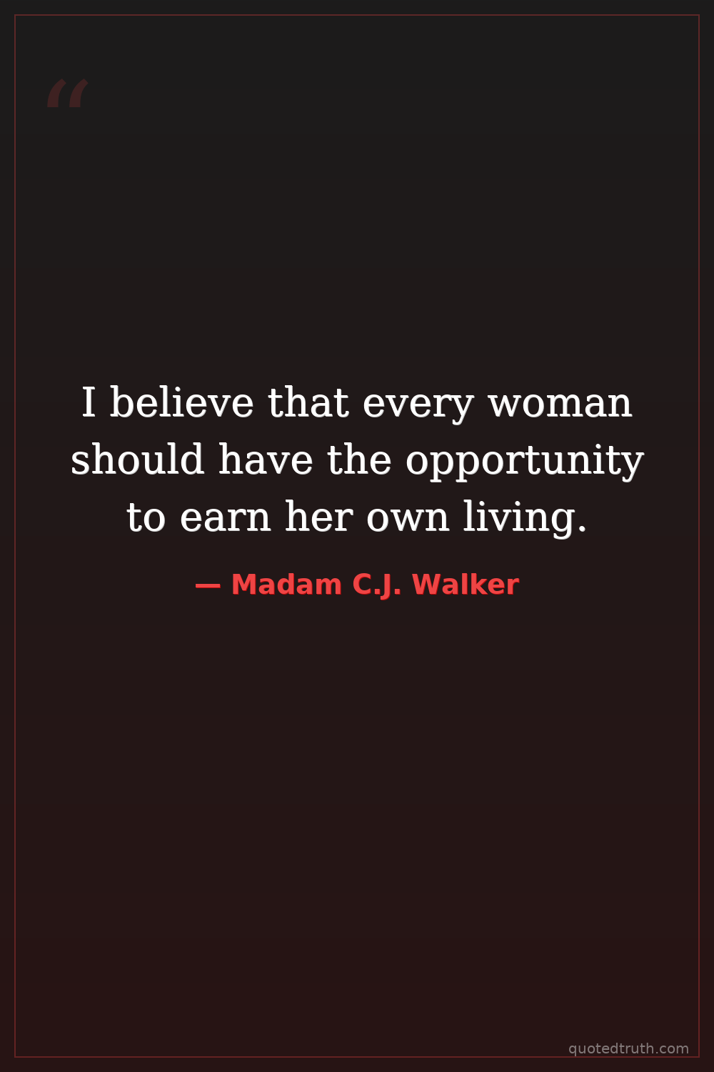 I believe that every woman should have the opportunity to earn her own living.