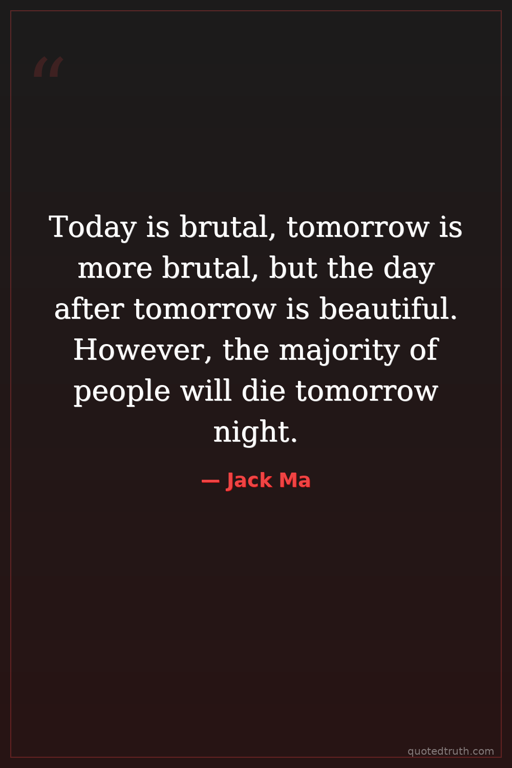 Today is brutal, tomorrow is more brutal, but the day after tomorrow is beautiful. However, the majority of people will die tomorrow night.