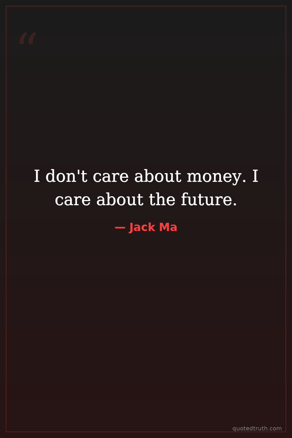 I don't care about money. I care about the future.