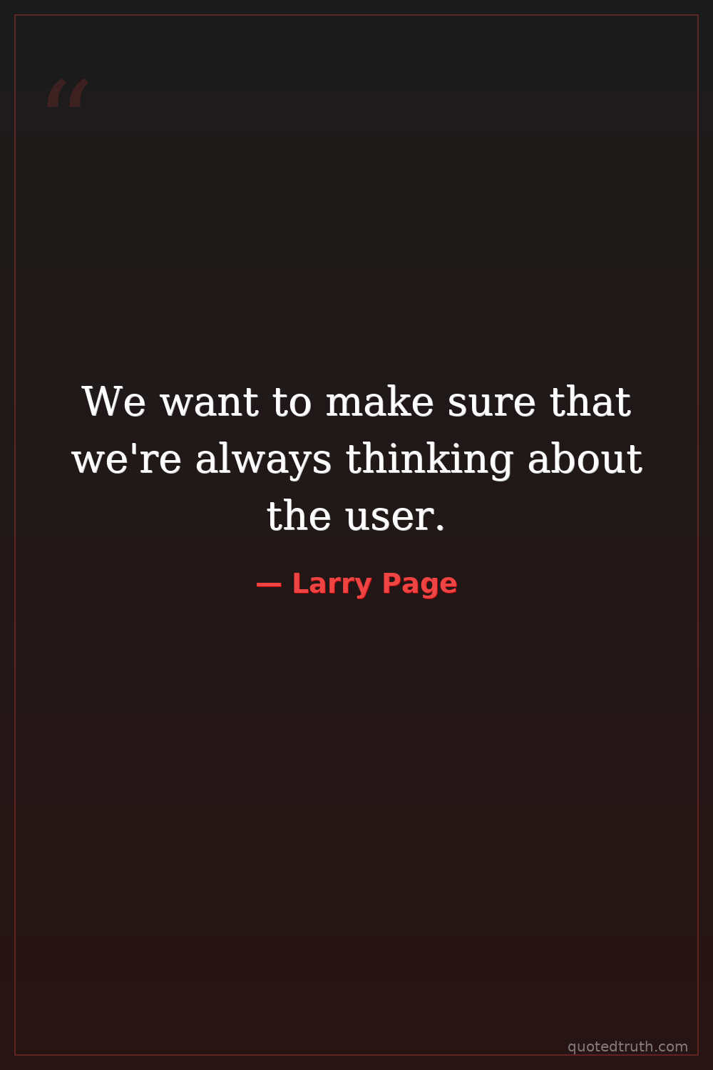 We want to make sure that we're always thinking about the user.