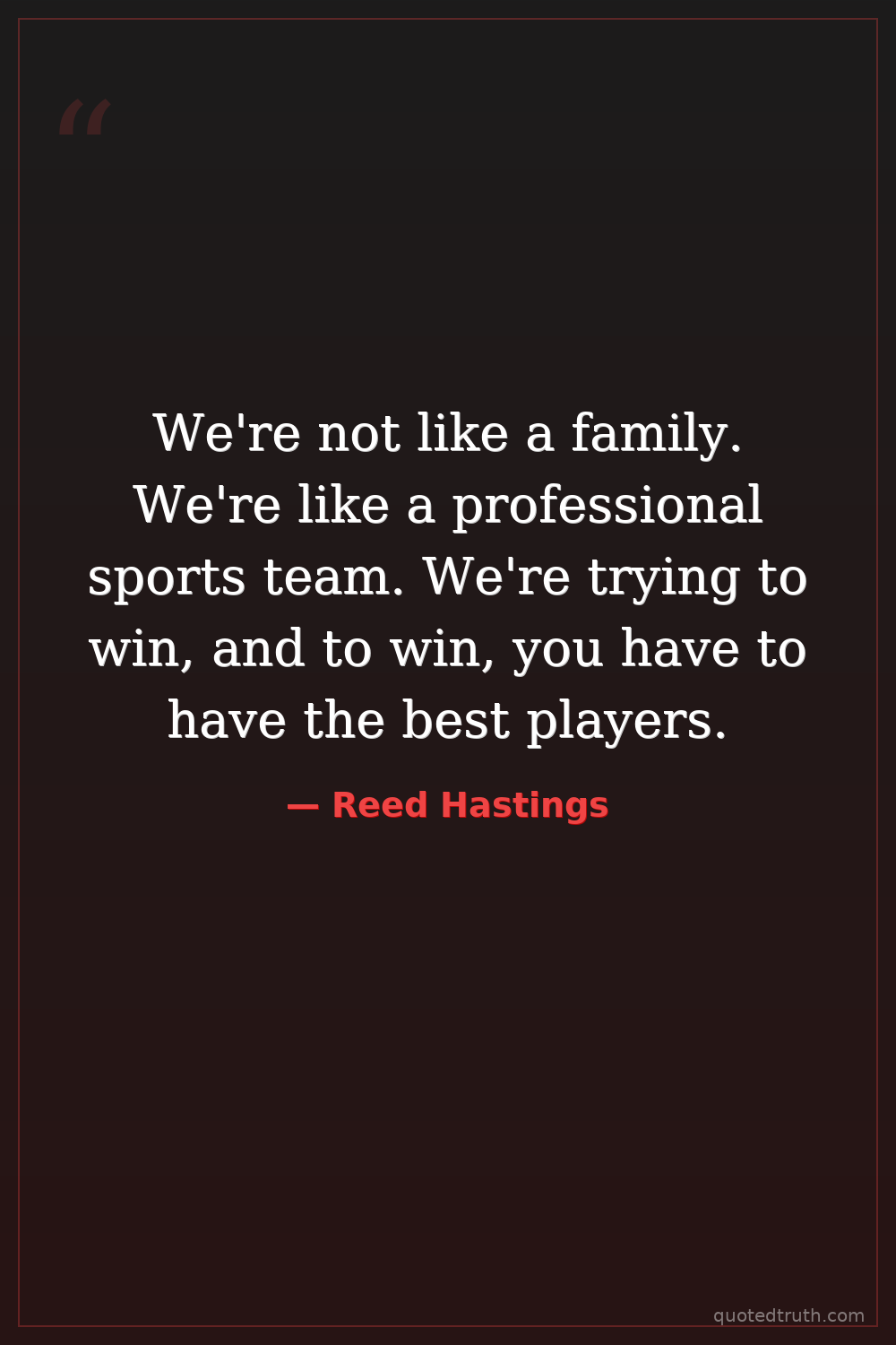 We're not like a family. We're like a professional sports team. We're trying to win, and to win, you have to have the best players.
