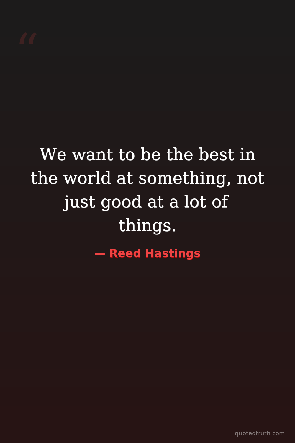 We want to be the best in the world at something, not just good at a lot of things.