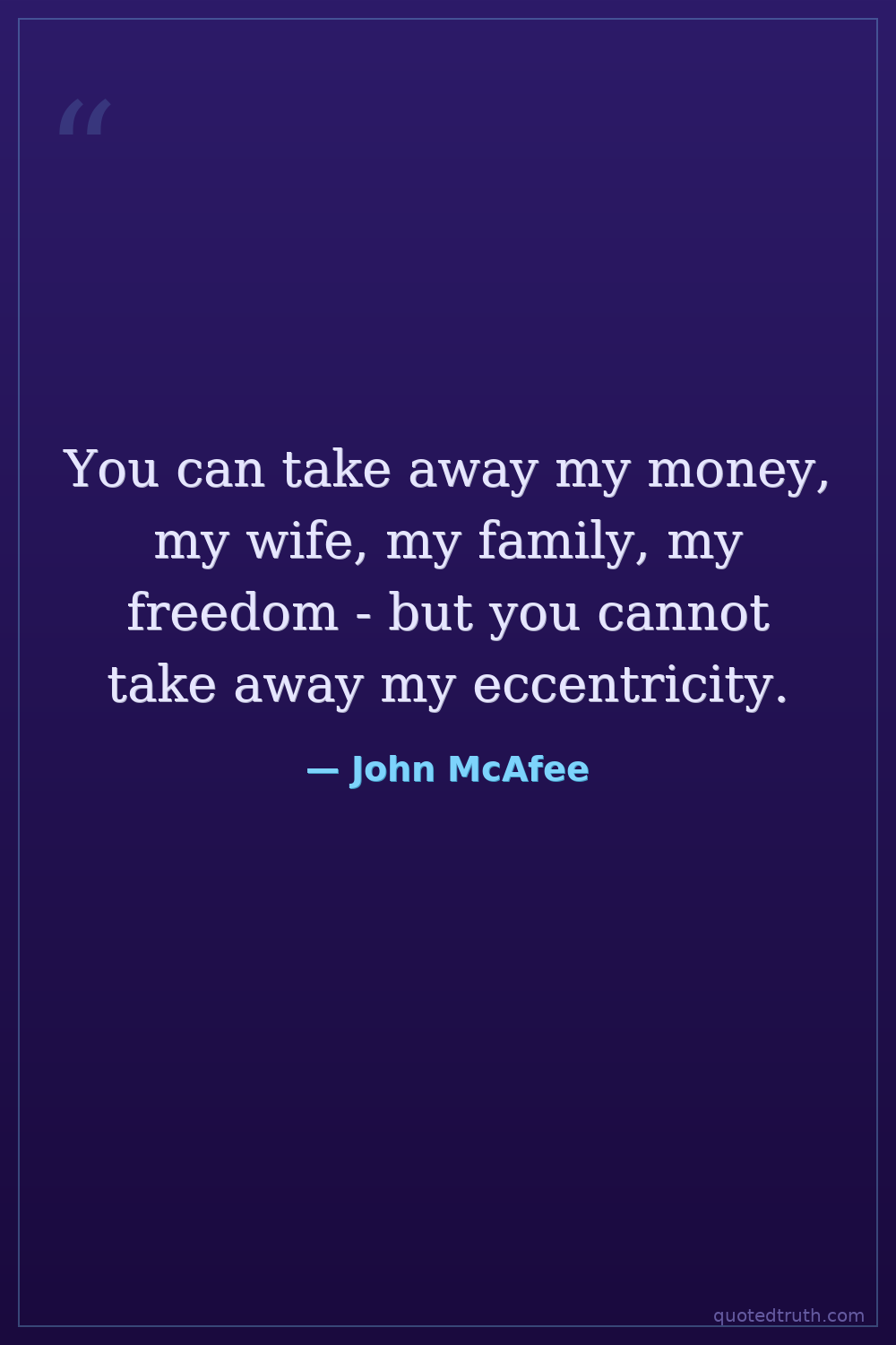 You can take away my money, my wife, my family, my freedom - but you cannot take away my eccentricity.