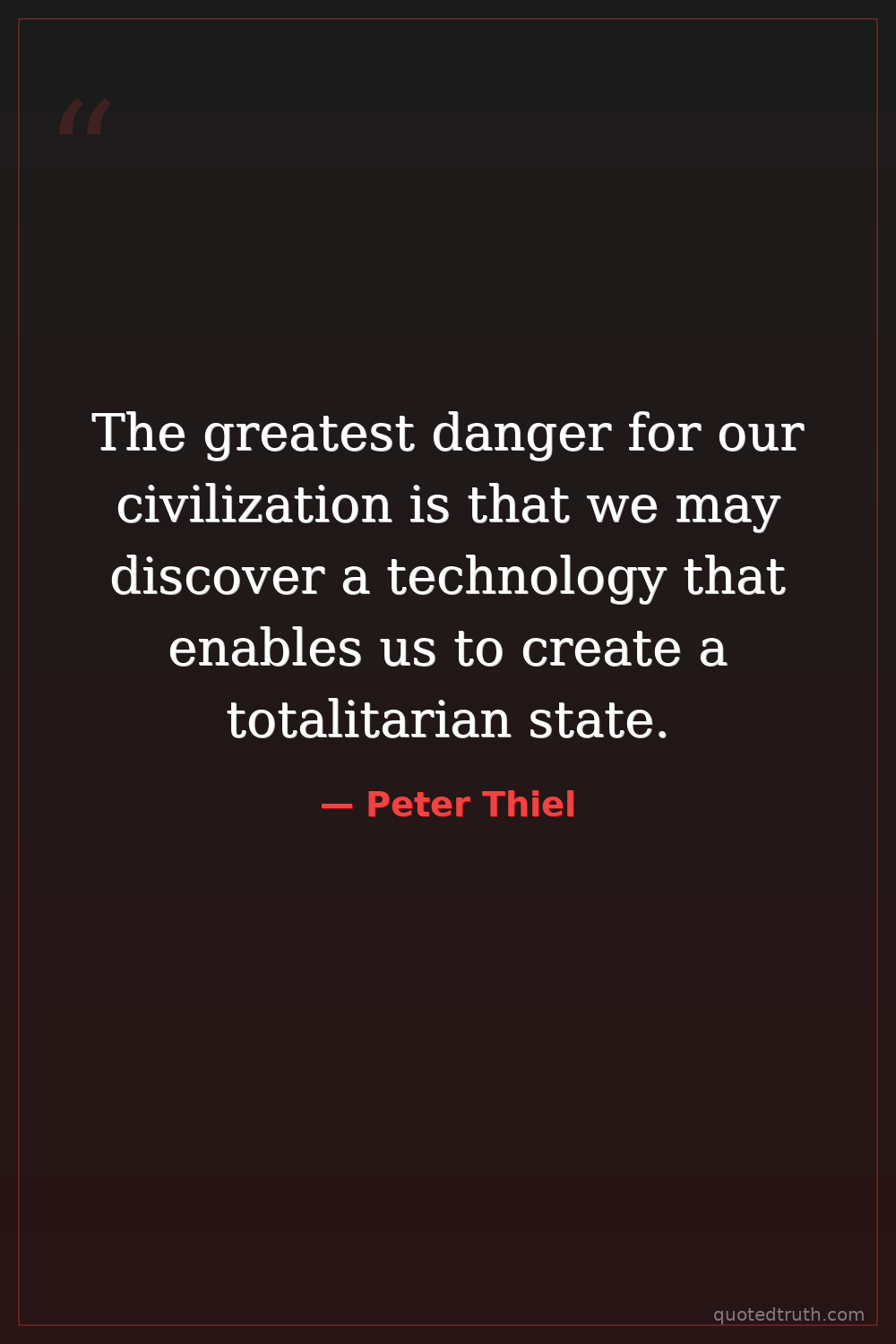 The greatest danger for our civilization is that we may discover a technology that enables us to create a totalitarian state.
