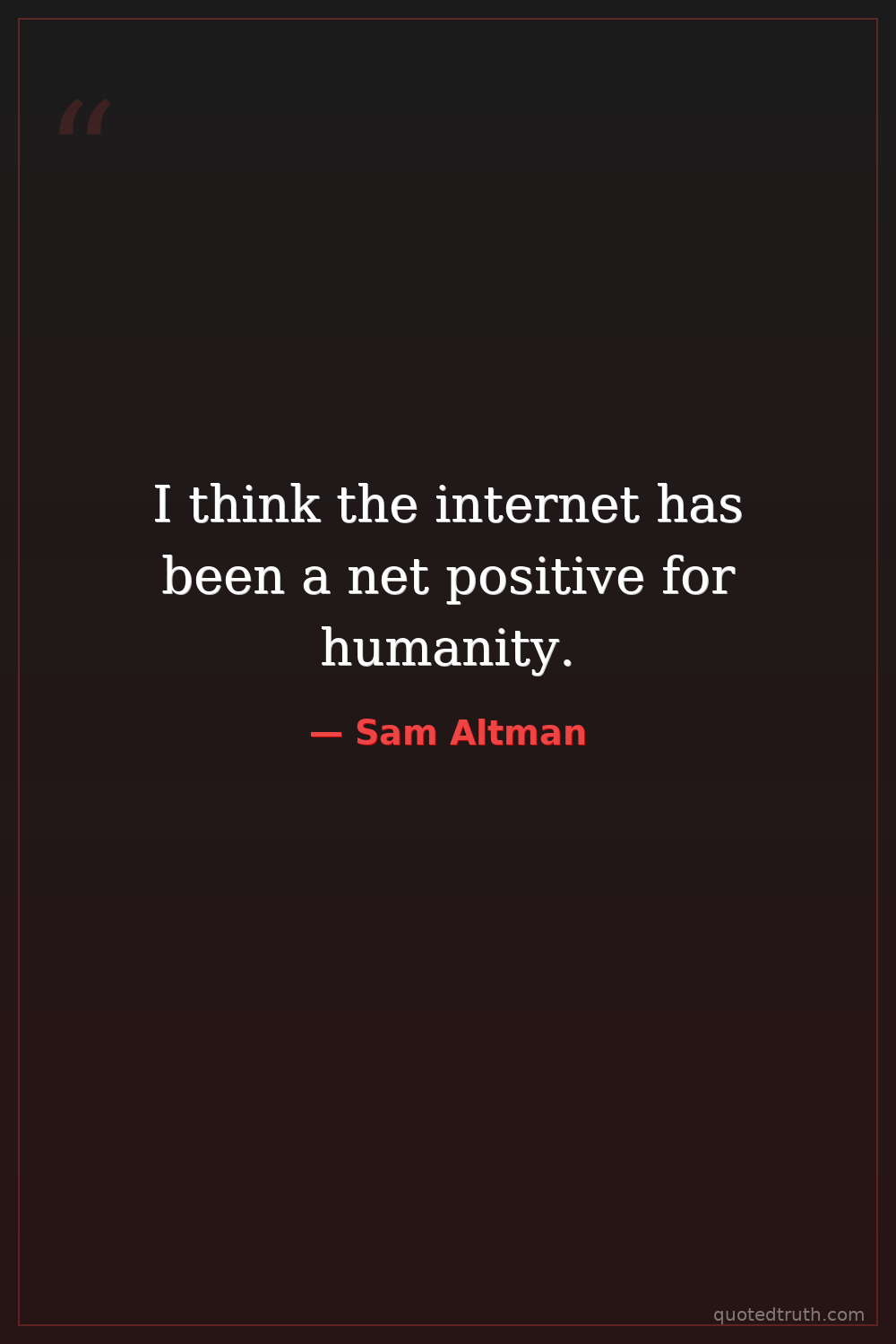 I think the internet has been a net positive for humanity.