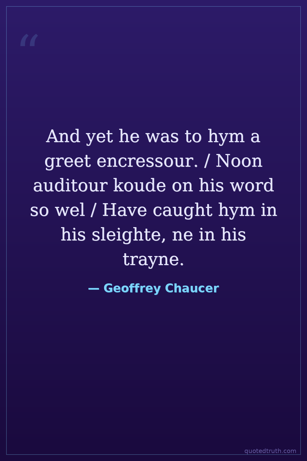 And yet he was to hym a greet encressour. / Noon auditour koude on his word so wel / Have caught hym in his sleighte, ne in his trayne.