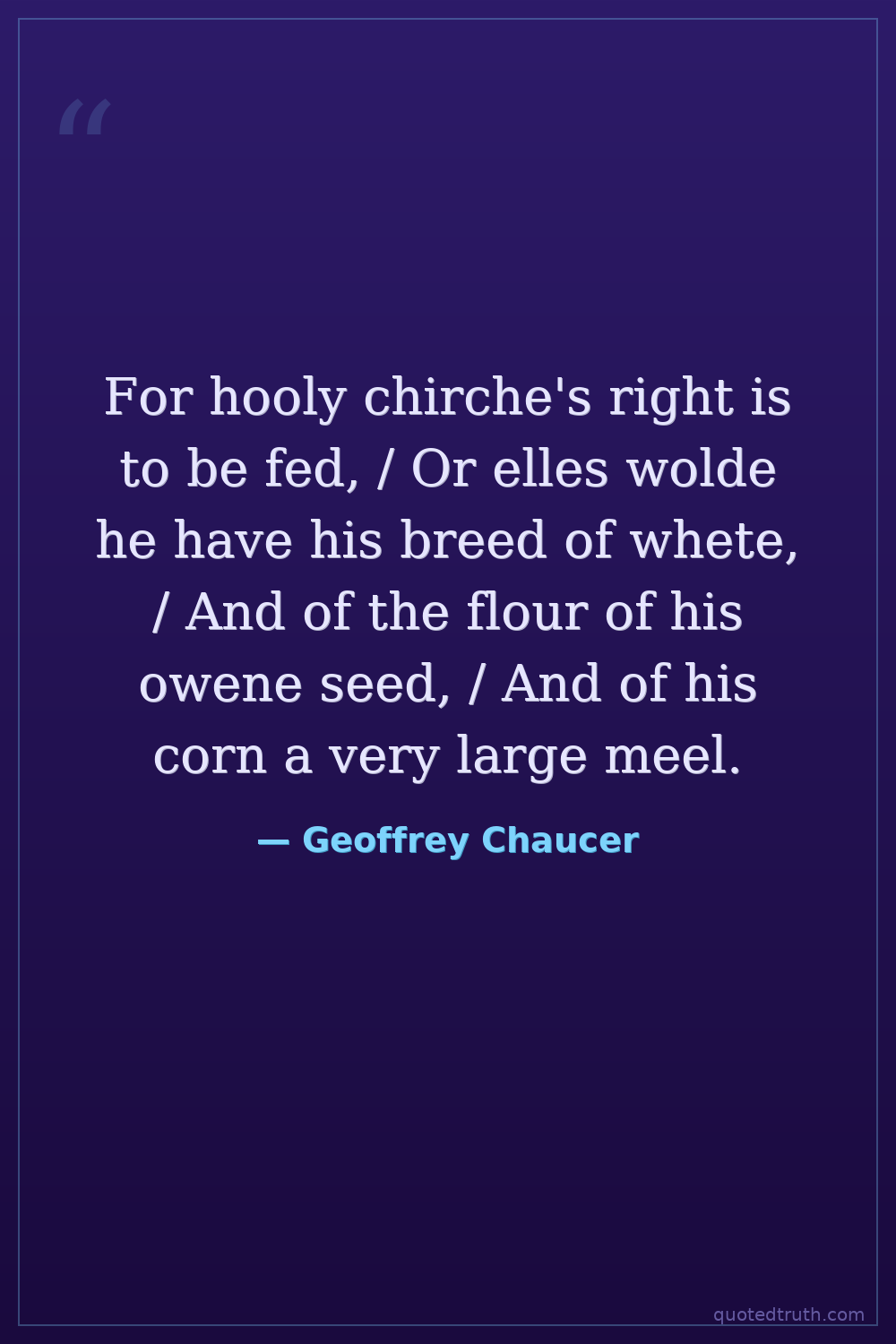 For hooly chirche's right is to be fed, / Or elles wolde he have his breed of whete, / And of the flour of his owene seed, / And of his corn a very large meel.
