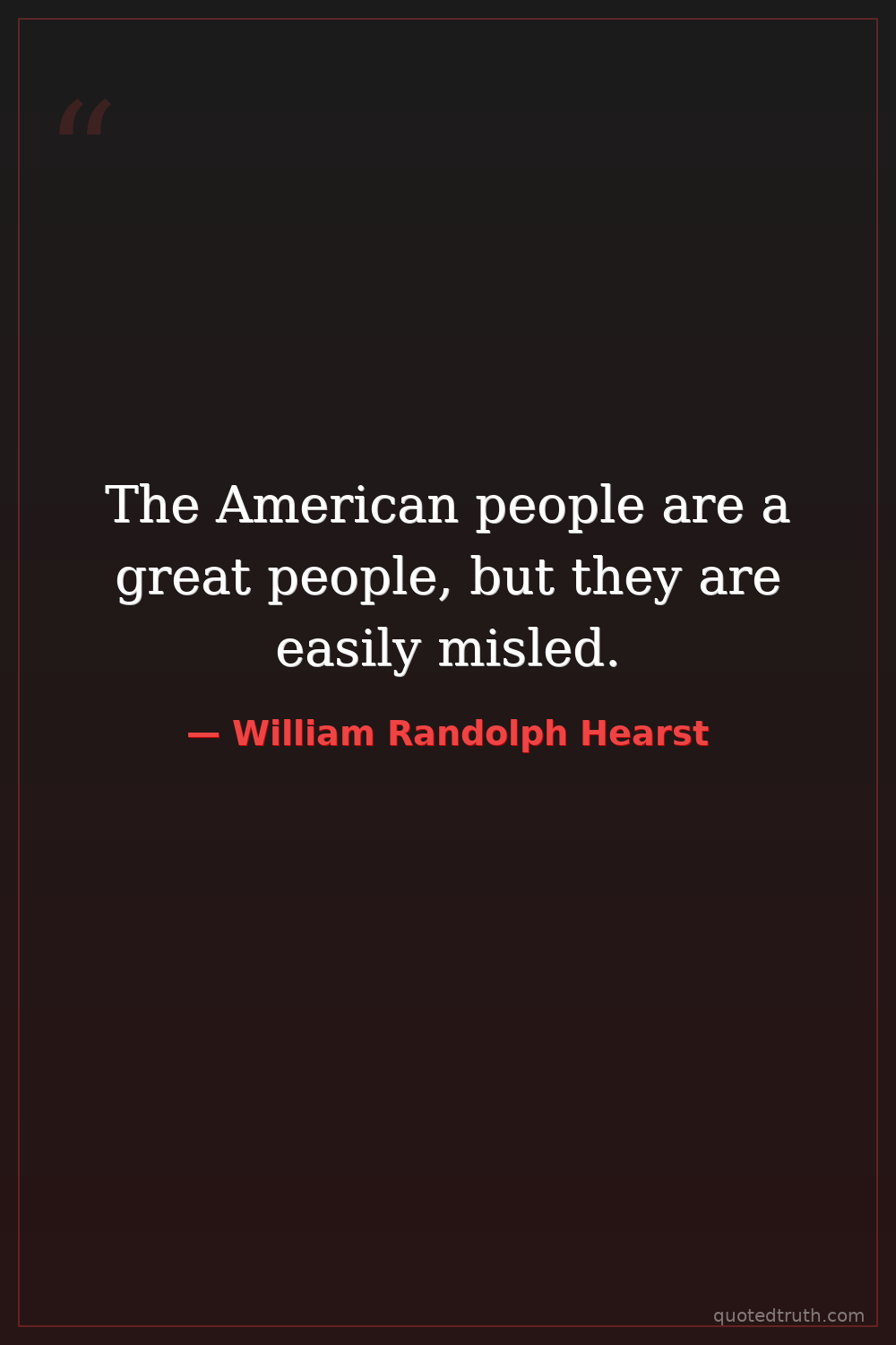 The American people are a great people, but they are easily misled.