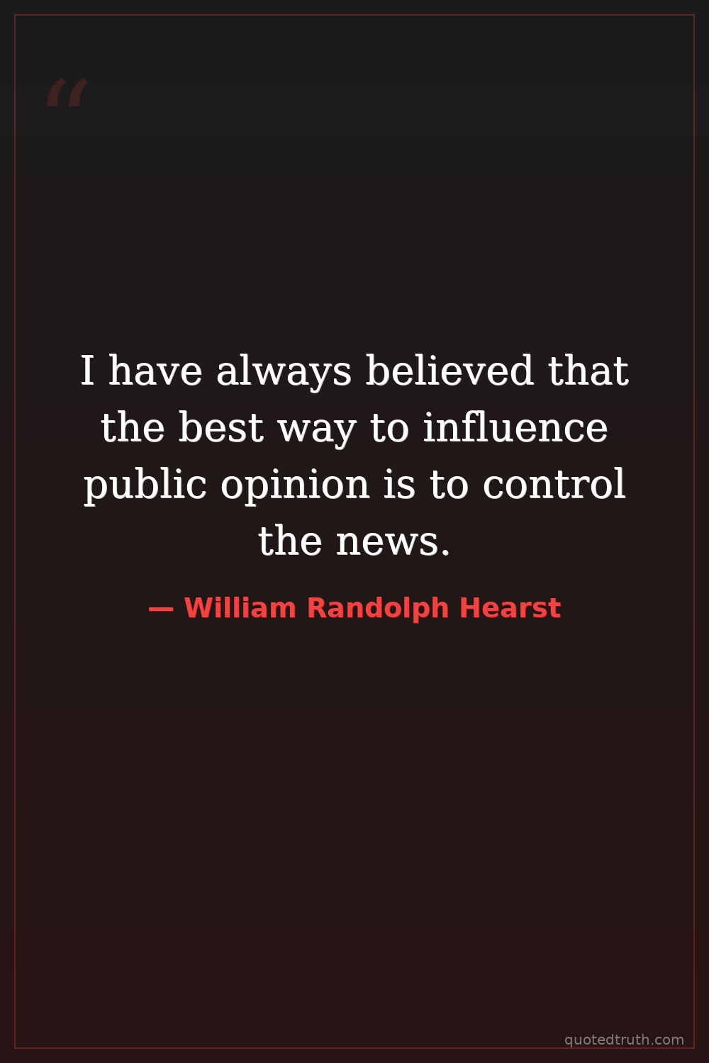 I have always believed that the best way to influence public opinion is to control the news.