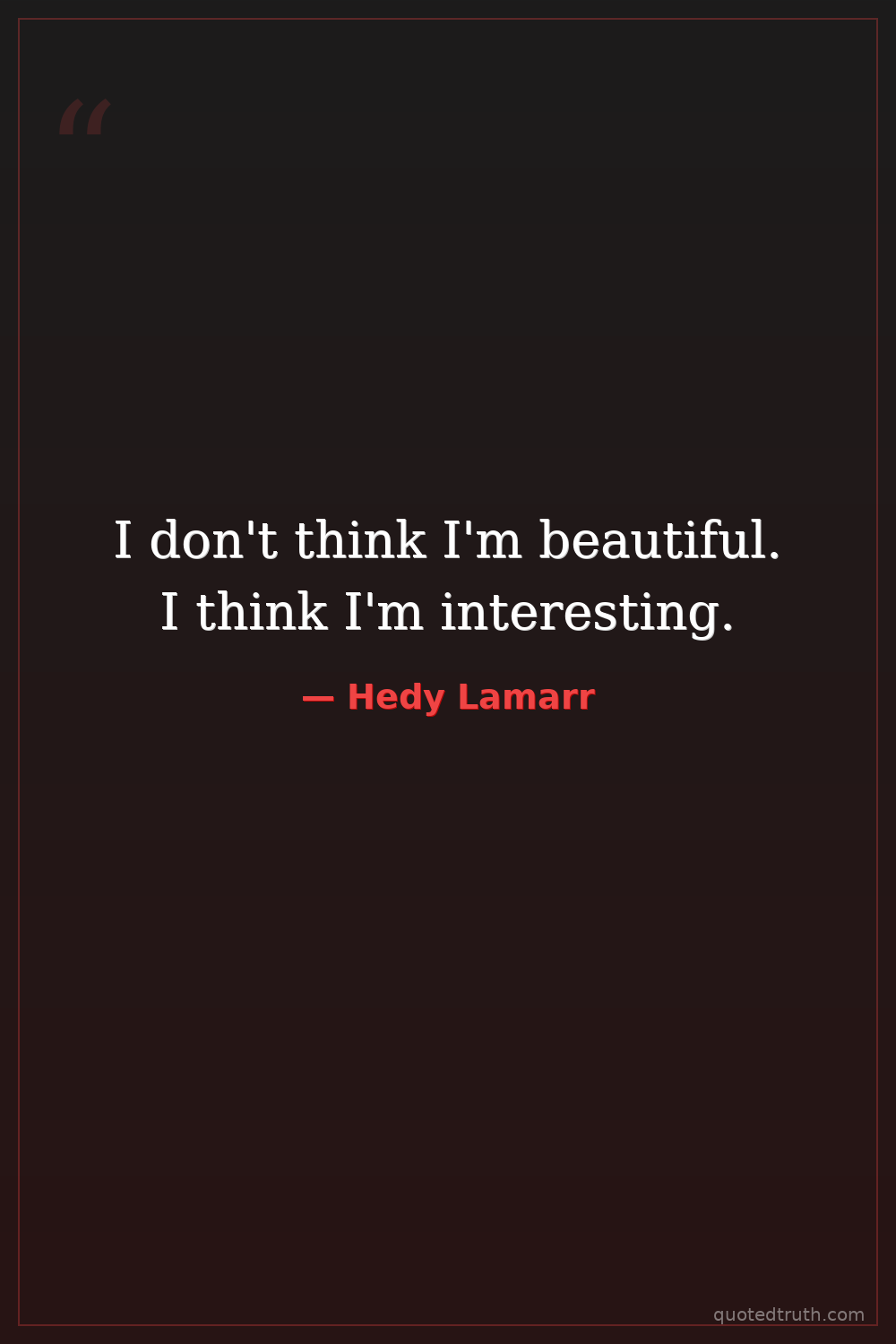 I don't think I'm beautiful. I think I'm interesting.