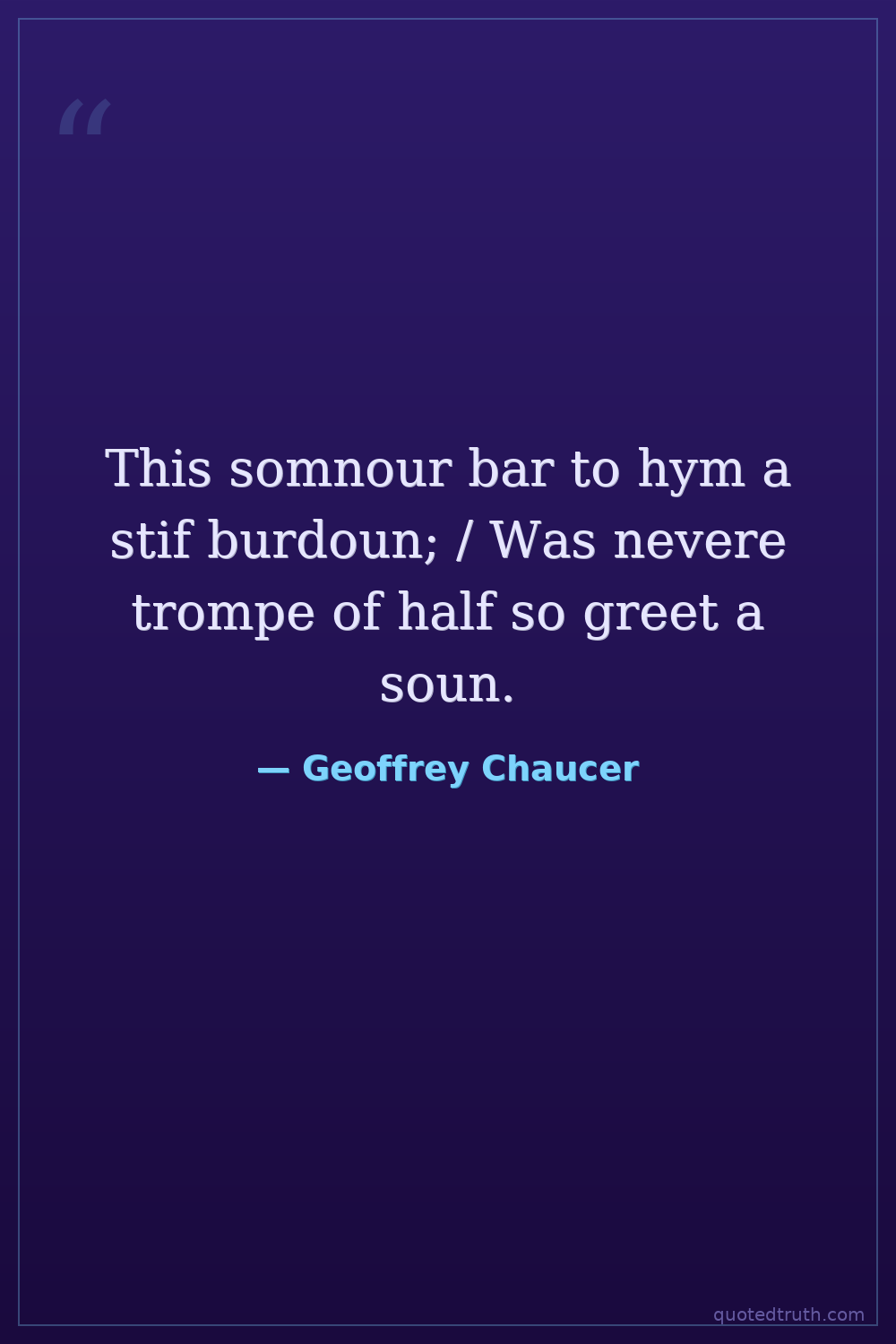 This somnour bar to hym a stif burdoun; / Was nevere trompe of half so greet a soun.