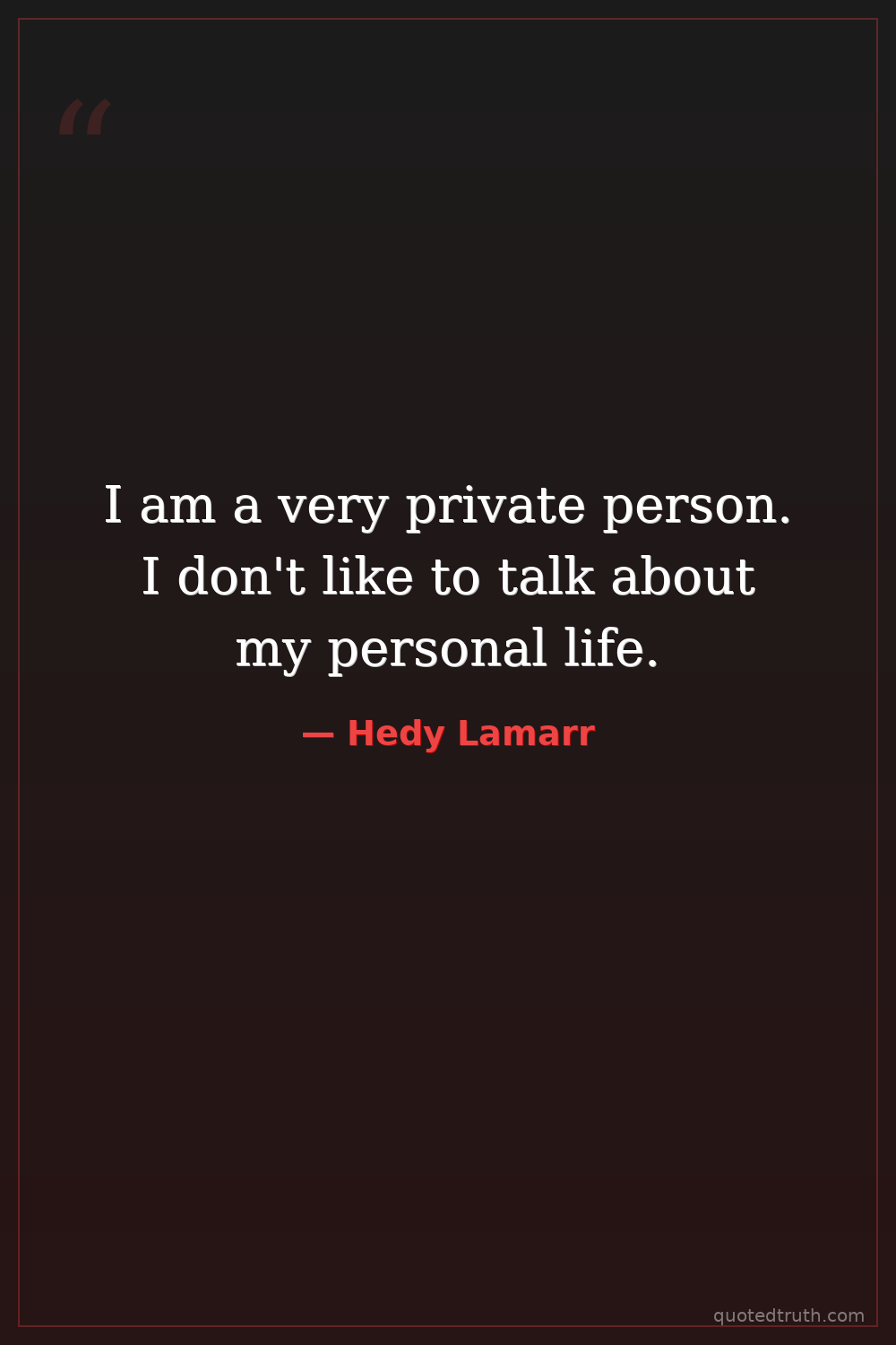 I am a very private person. I don't like to talk about my personal life.