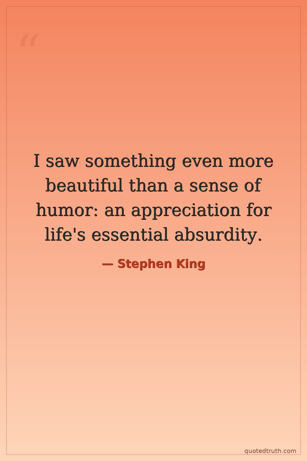 I saw something even more beautiful than a sense of humor: an appreciation for life's essential absurdity.