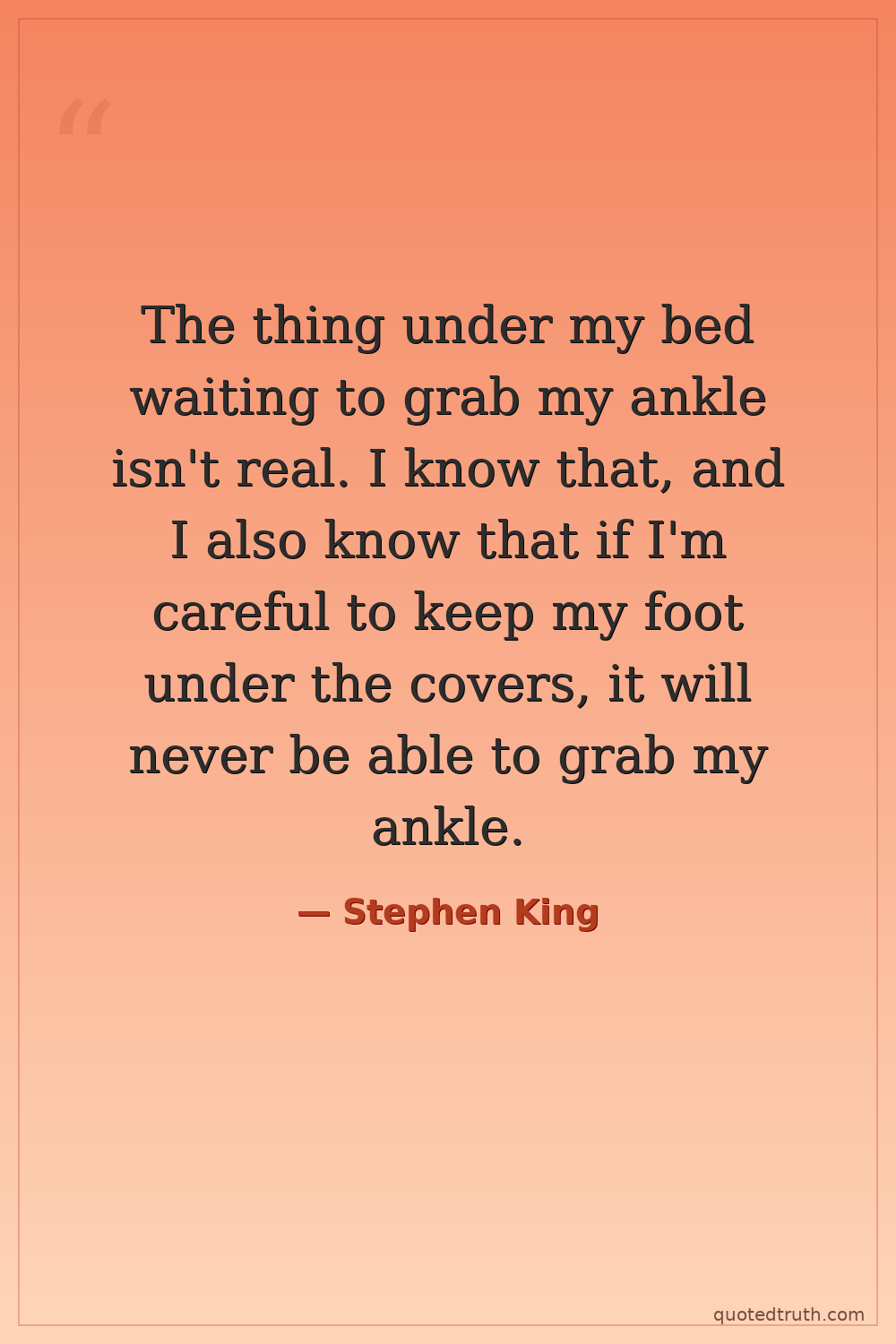 The thing under my bed waiting to grab my ankle isn't real. I know that, and I also know that if I'm careful to keep my foot under the covers, it will never be able to grab my ankle.