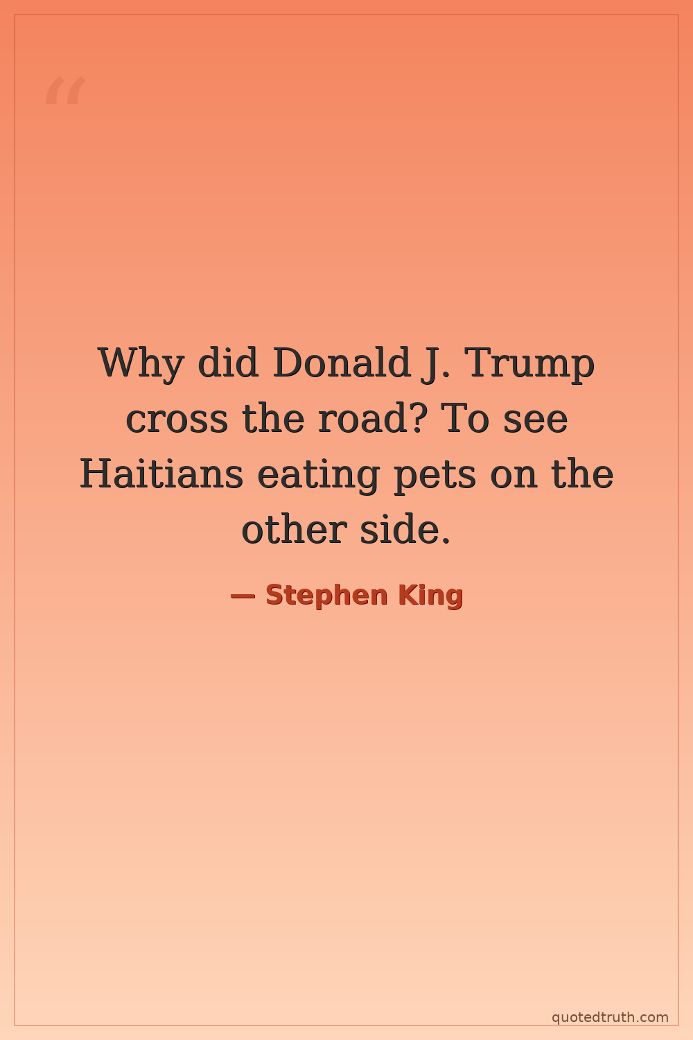 Why did Donald J. Trump cross the road? To see Haitians eating pets on the other side.