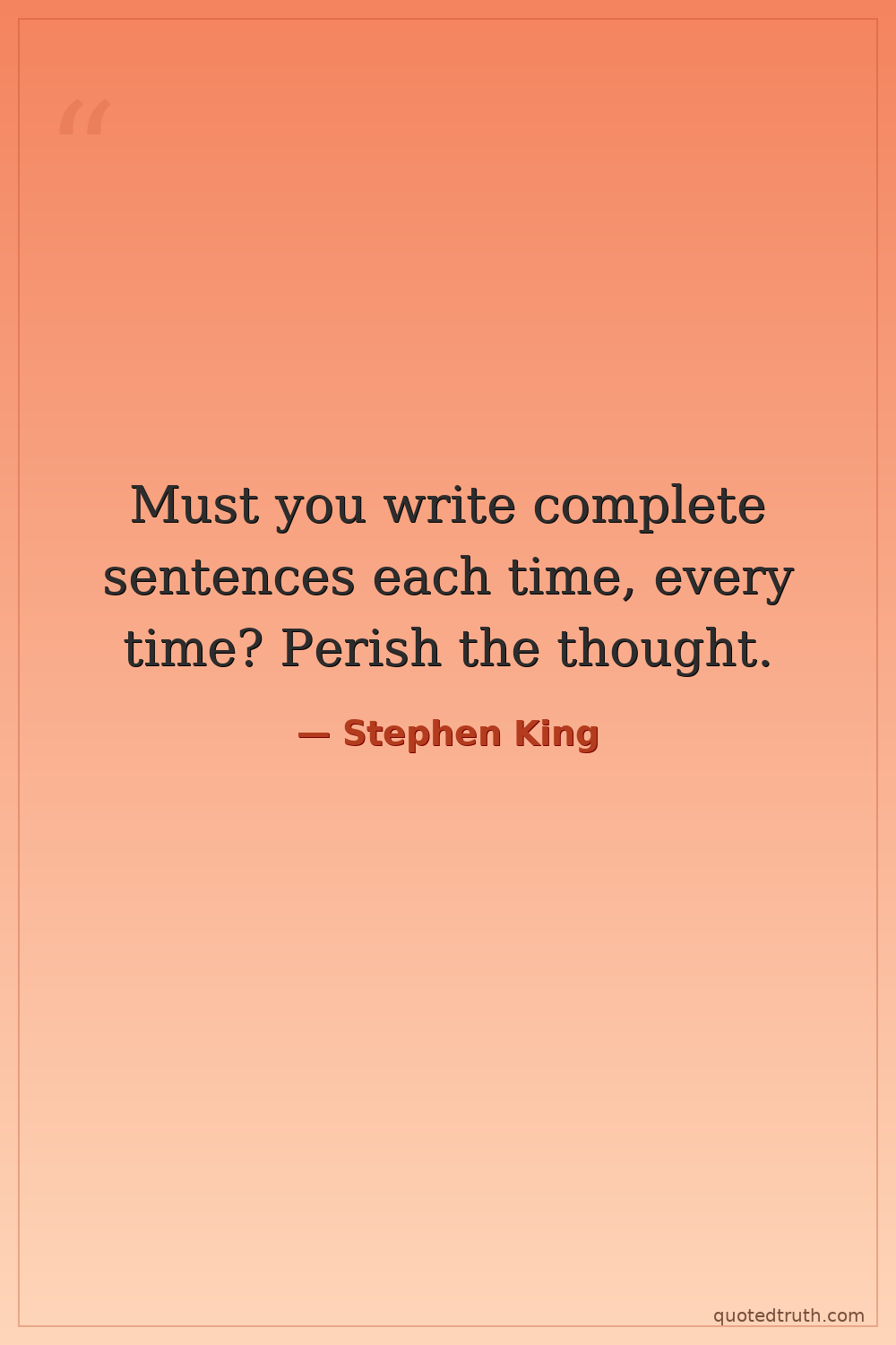 Must you write complete sentences each time, every time? Perish the thought.
