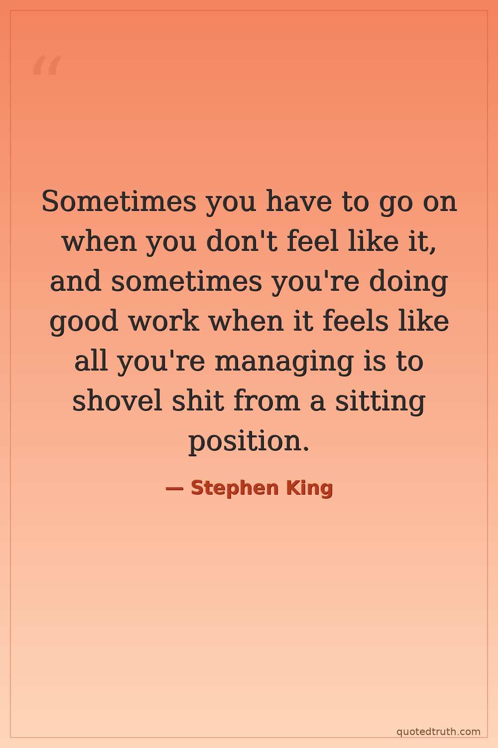 Sometimes you have to go on when you don't feel like it, and sometimes you're doing good work when it feels like all you're managing is to shovel shit from a sitting position.