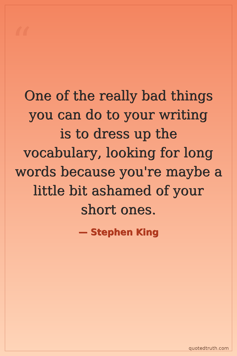 One of the really bad things you can do to your writing is to dress up the vocabulary, looking for long words because you're maybe a little bit ashamed of your short ones.
