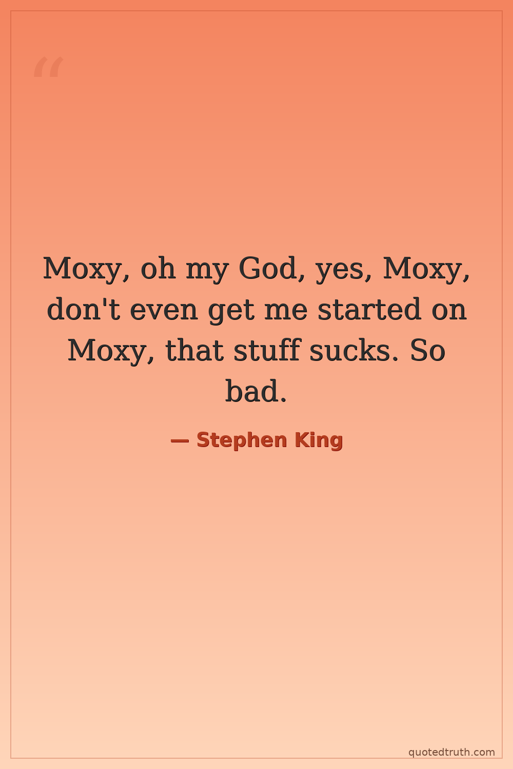 Moxy, oh my God, yes, Moxy, don't even get me started on Moxy, that stuff sucks. So bad.