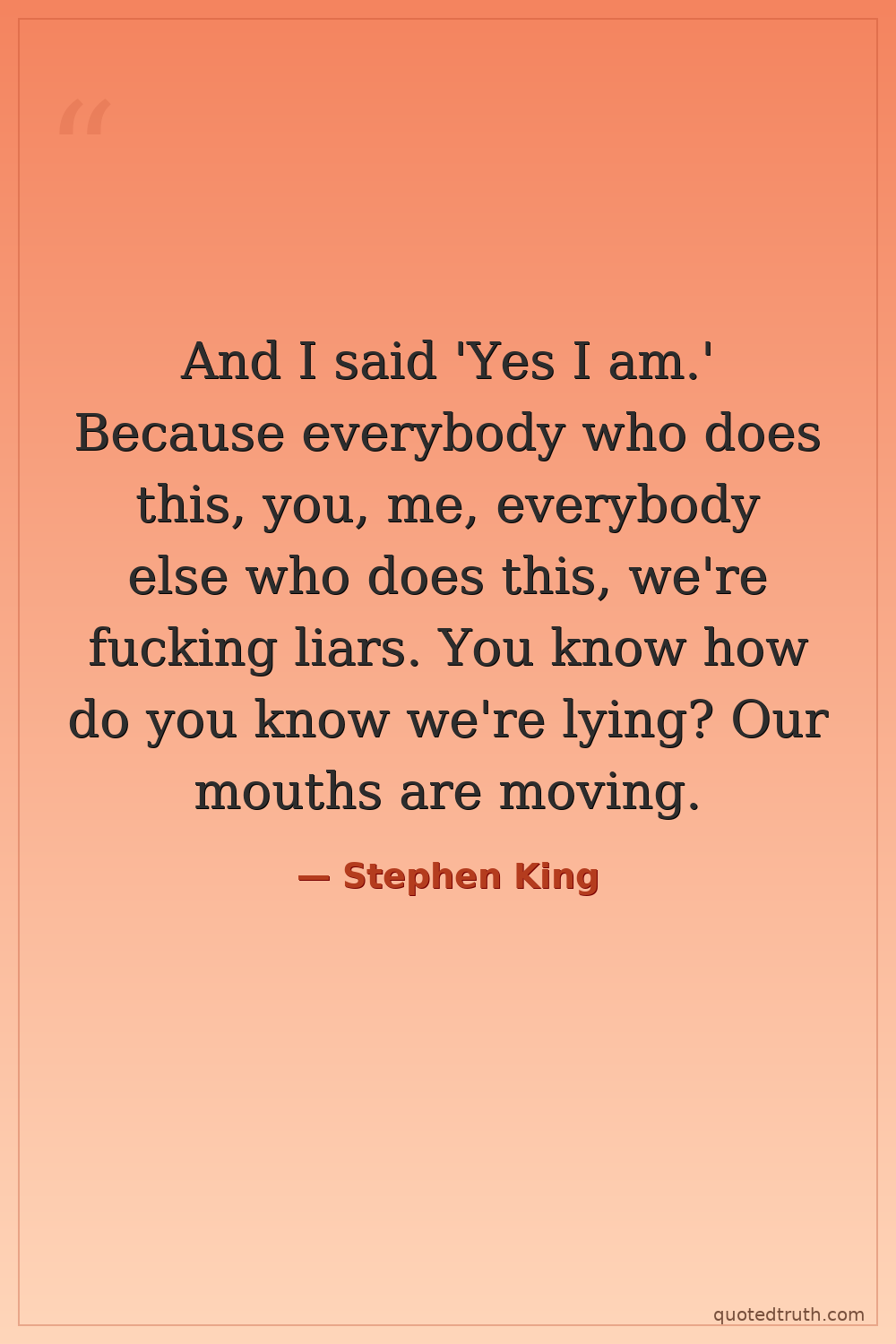 And I said 'Yes I am.' Because everybody who does this, you, me, everybody else who does this, we're fucking liars. You know how do you know we're lying? Our mouths are moving.