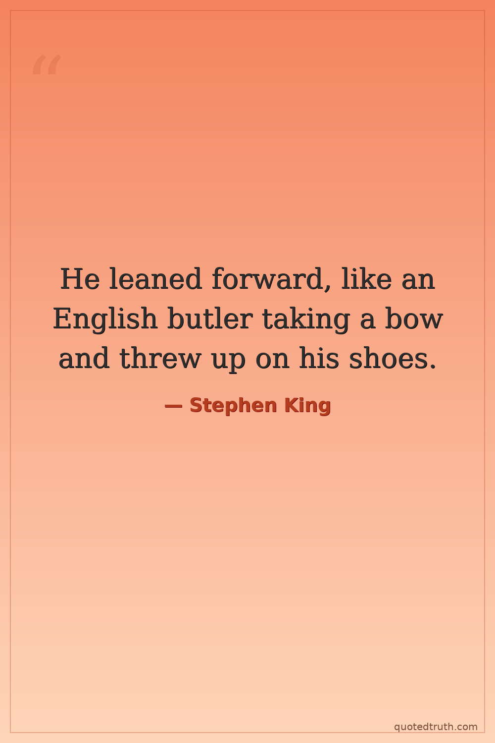 He leaned forward, like an English butler taking a bow and threw up on his shoes.