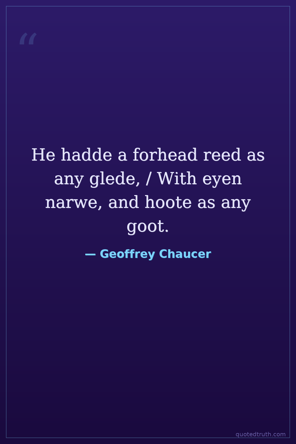 He hadde a forhead reed as any glede, / With eyen narwe, and hoote as any goot.