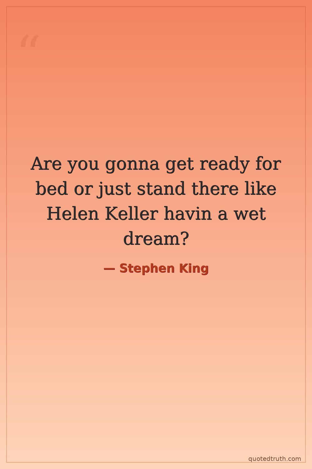 Are you gonna get ready for bed or just stand there like Helen Keller havin a wet dream?